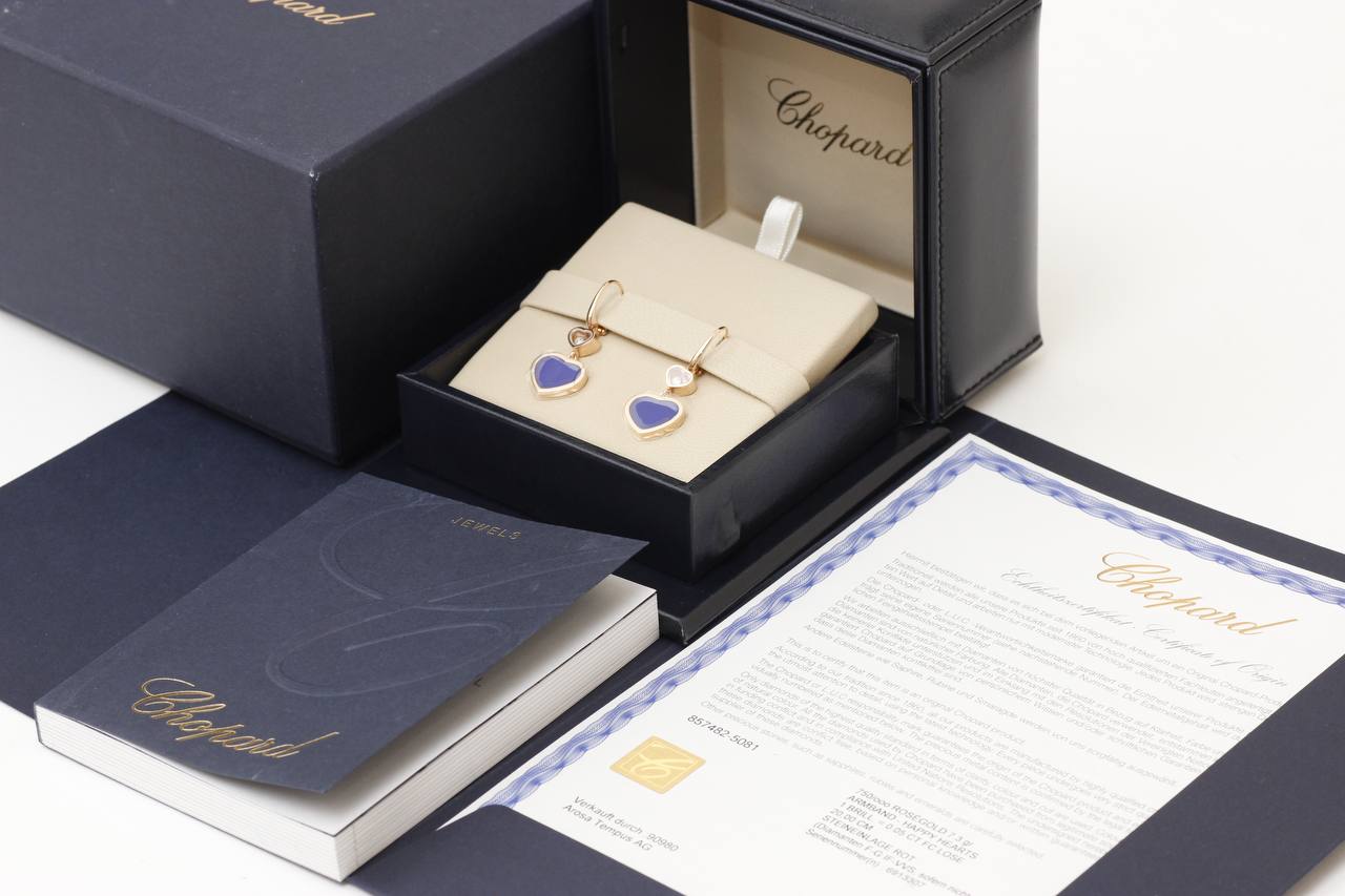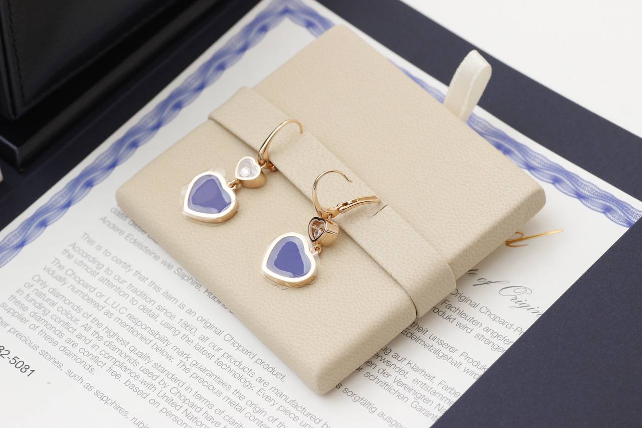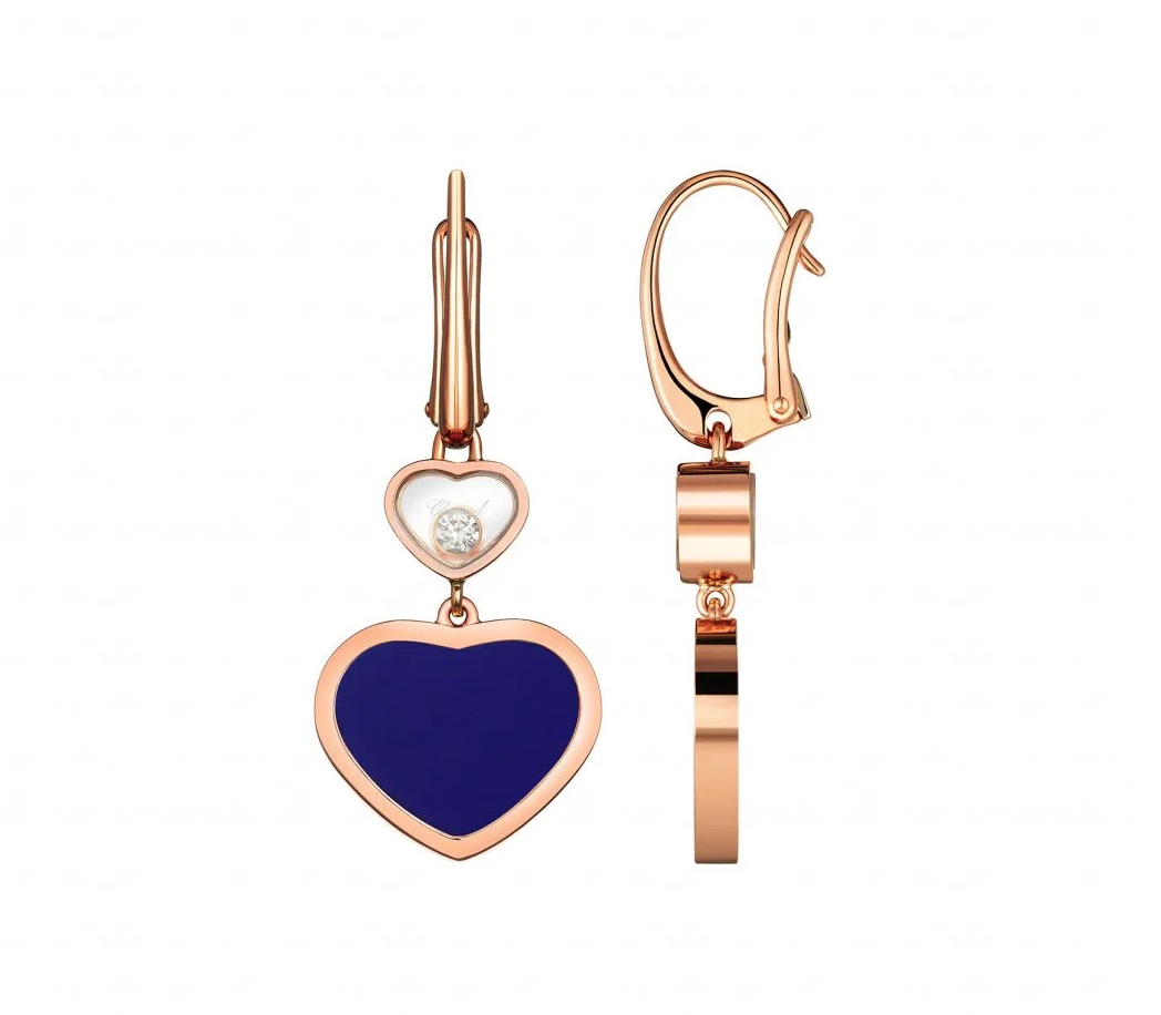 СЕРЬГИ CHOPARD HAPPY HEARTS HAPPY DIAMONDS 837482-5510 РОЗОВОЕ ЗОЛОТО 750/ПЛАВАЮЩИЕ БРИЛЛИАНТЫ/ВСТАВКА СИНЕГО ЦВЕТА