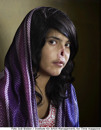 Победительницей стала южноафриканский фотограф Джоди Бибер (Jodi Bieber), предоставившая на конкурс снимок 18-летней афганской девушки Биби Айша (Bibi Aisha), которой муж, боевик движения Талибан, отрезал нос. Организаторы конкурса World Press Photo также присудили этой драматической фотографии первое место в номинации Портрет, т.к. этот снимок передает яркий образ насилия по отношению к женщине в исламе.