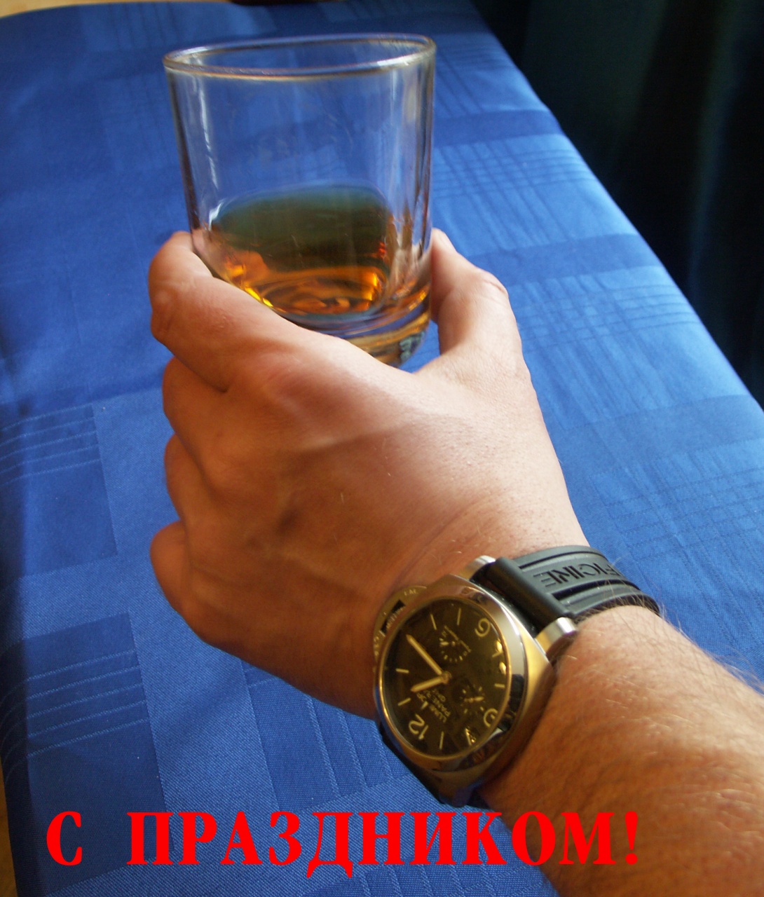Собственно, о часах. Оказались действительно массивные, как надо, и не такие уж маленькие. GMT и резерв – на своих местах, имхо, ничего лишнего. Стеклышко сзади, стеклышко спереди. Там крутится, тут болтается. Все как надо. В общем, теперь и у меня есть Панерай.