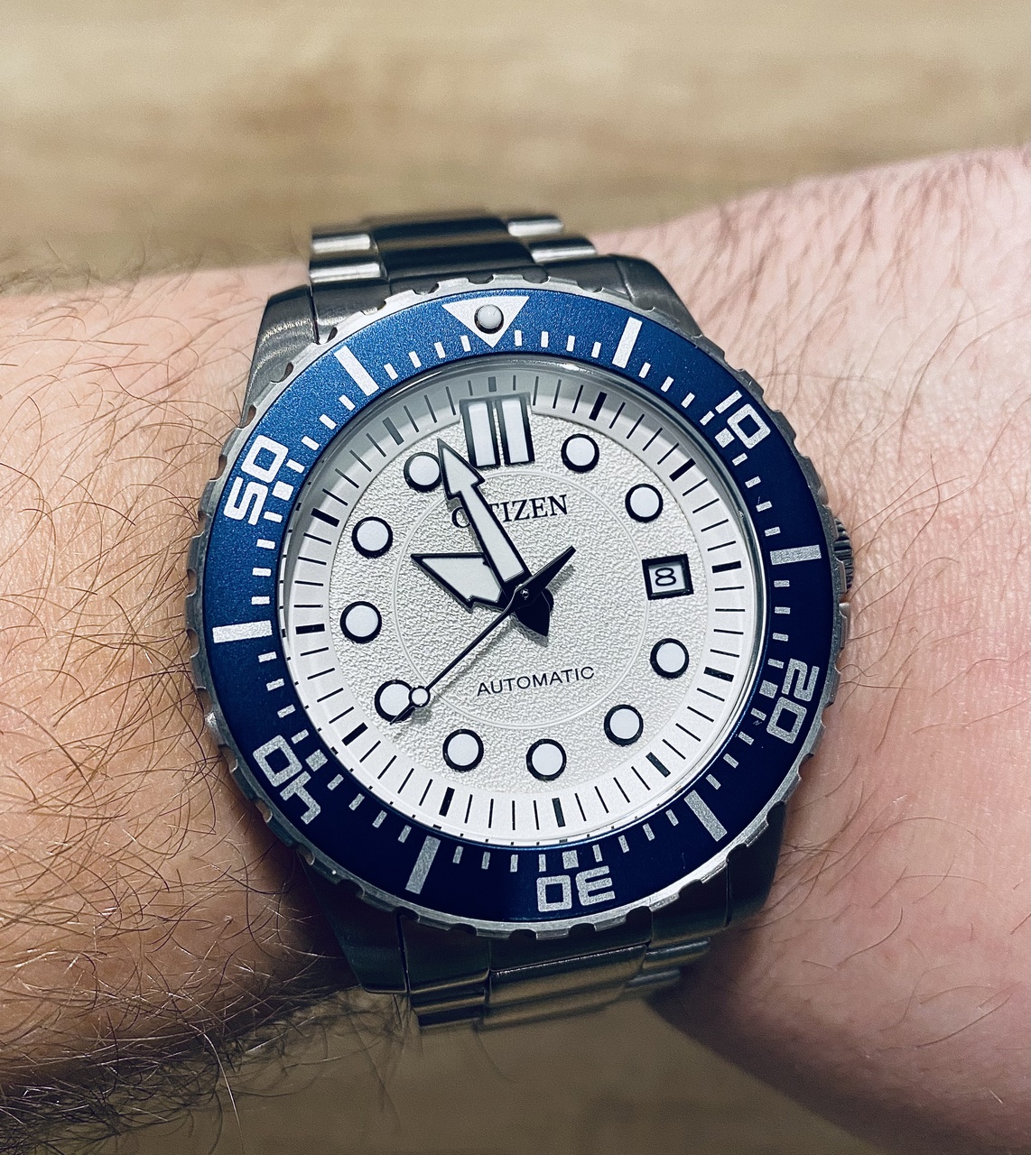 Приехали ) первый Ситизен в коллекции и вообще в руках . Пока только эмоции ))) из приятного- безель очень четкий и стоит как камень вообще без единого признака на люфт, полностью все Сатин , очень удобная посадка на мои 17.5 см , цифер ни одна фотография не передает . Ну а дальше будем смотреть )))