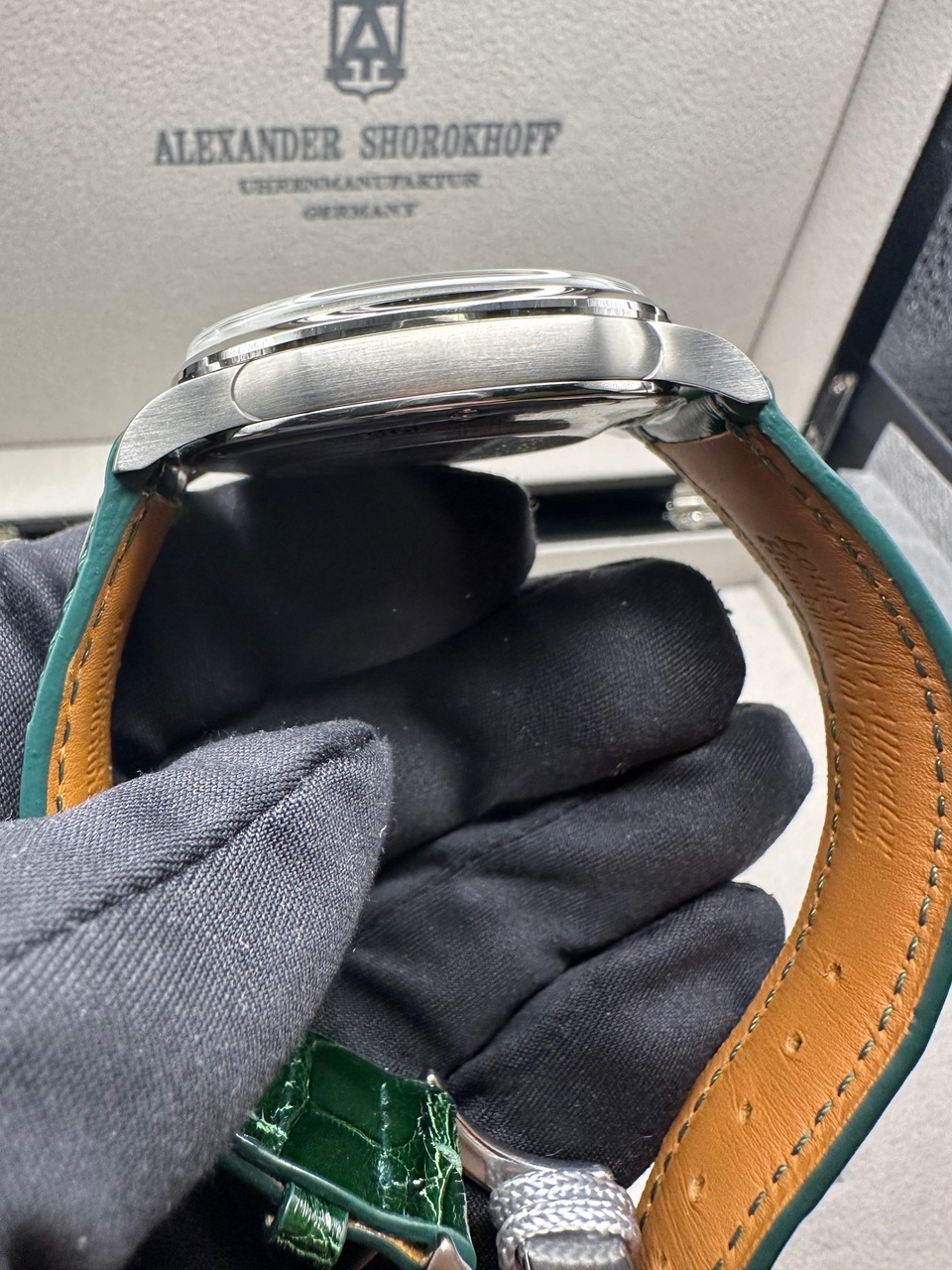Новинка на Российском рынке - часы от известного немецкого производителя часов Alexander Shorokhoff. Можно догадаться, что бренд имеет Российские корни, и хотя, часы полностью производятся в Германии и используют в большинстве случаев швейцарские механизмы, встречаются и лимитированные выпуски на полностью перебранных калибрах советского производства Полет. В свое время Александр Шорохов занимался продажей часов Полет в Германии, а затем создал свой собственный бренд. Несмотря на небольшую известность широкой публике в России, в мире бренд довольно известен и очень популярен среди коллекционеров. Огромное количество наград за выдающийся дизайн, большое внимание прессы и собственное лицо, которое можно встретить далеко не у всех часовых брендов - все это заслуга Александра Шорохова, создателя не только самого бренда, но и дизайна всех производящихся под этим брендом часов. В прошлом наш соотечественник, очень интеллигентный и приятный в общении человек, мастер своего дела, носитель русской культуры, претворяющий в жизнь свои творческие идеи в часовом искусстве.