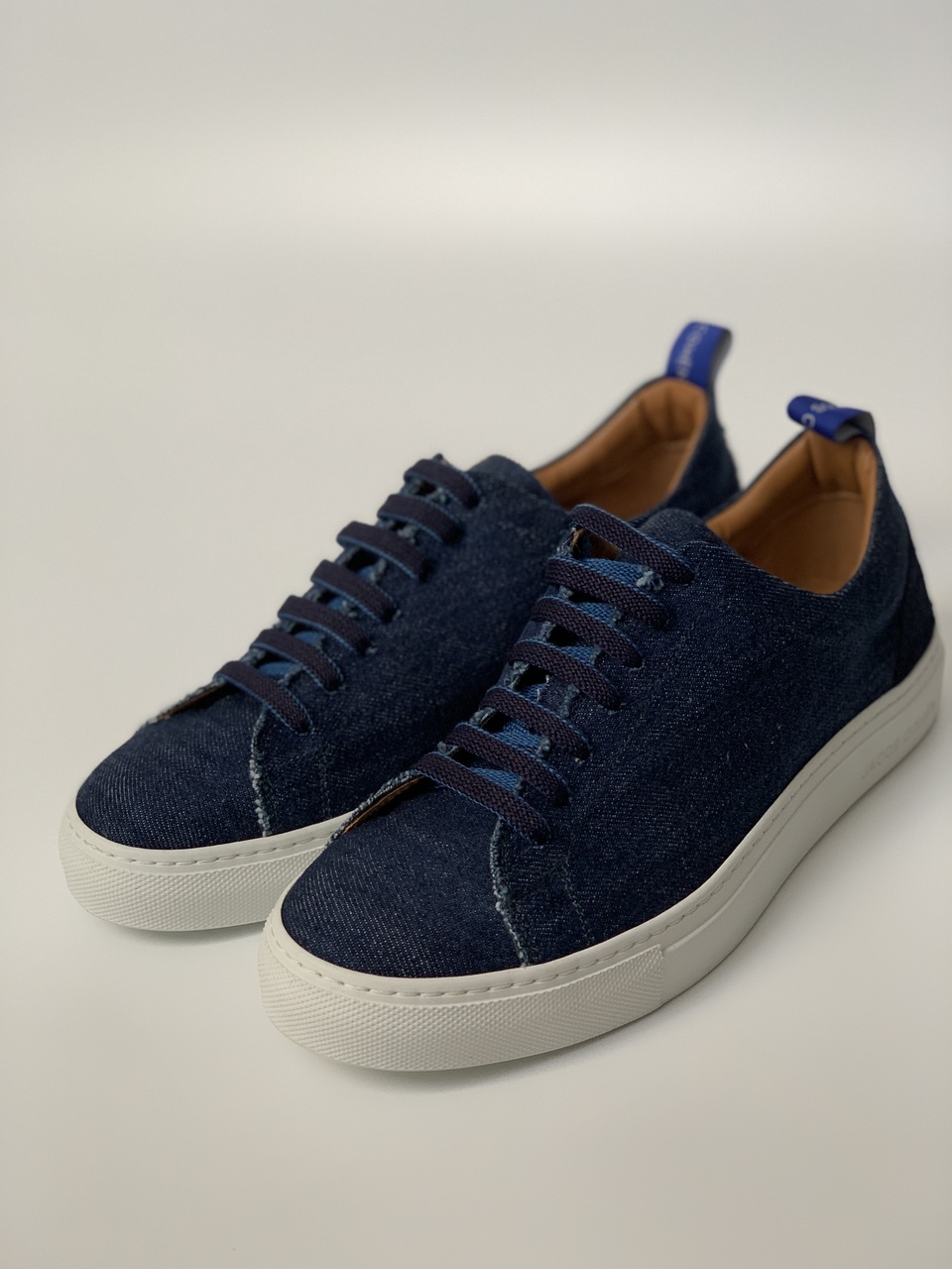 Сочетание новых изысканных материалов определяет лаконичный стиль сникеров JACOB COHËN.Неоднородный и размытый вид хлопкового денима сочетается с насыщенной текстурой ворса пони,создавая небольшой контраст текстур на заднике в тон изделию.Хлопковый деним напоминает о типичных материалах сезона:в самом деле,ткань позаимствована из линейки мужской одежды.Она обрабатывается специальным образом для использования также при изготовлении аксессуаров.Плоская резиновая подошва из лёгкого и гибкого материала белого цвета сбоку украшена логотипом марки,что делает обувь узнаваемой.Модель синего цвета с закруглённым носком имеет шнуровку спереди и петлю для подтягивания сзади.Фирменная стелька и подкладка из кожи завершают эту модель обуви и обеспечивают комфорт при носке.