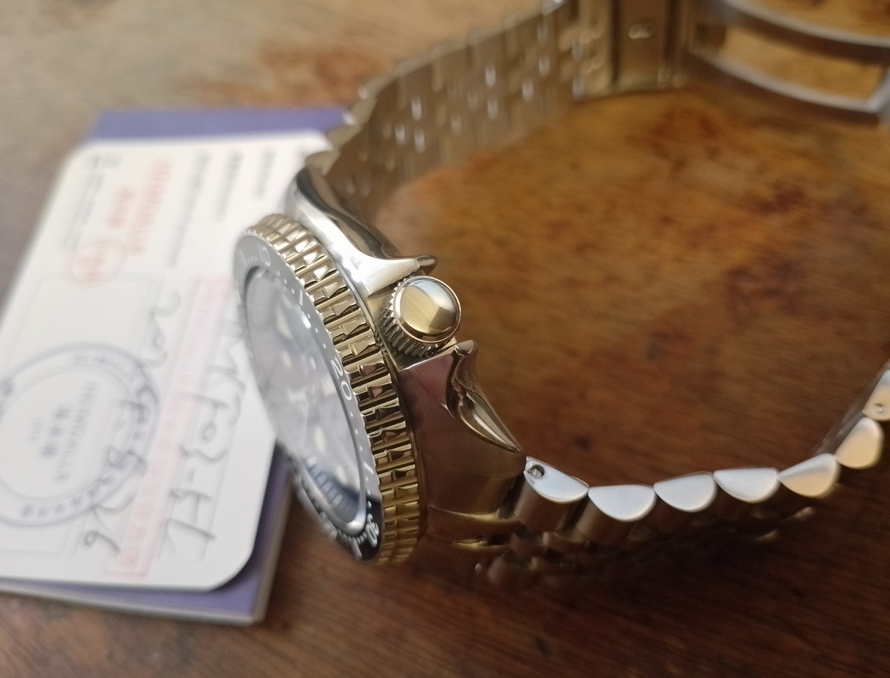 Приехали ко мне часики, хомаж на Seiko SKX007 от HeimDallr. Очень понравились, как и ожидалось - качество на высоте, заказал опять от HeimDallr, потому что у меня уже есть часы от этого китайского бренда (хомаж на Seiko Monstr v3 в бардово-рубиновом варианте). Исполнение очень понравилось, качество отличное, цвет циферблата - это просто нечно неописуемое, на фотографиях у продавца он смотрится как чёрный, хотя заявлен как синий, на самом деле, в живую, он почти чёрный с очень глубоким отливом в тёмно-тёмно синий (чернильный), я бы сказал - цвет ночного океана - класс! Я как раз не хотел синий, а хотел почти чёрный, так и есть. То ли это играет антибликовое тёмно-синее покрытие стекла, то ли циферблат имеет такой классный оттенок. Сапфировое стекло имеет небольшую фаску по краю, что придаёт дополнительного шарма, метки чуть преломляются при некоторых ракурсах. Взял специально на юбилейном браслете, никогда не было у меня такого, а обычный трёхзвенный ойстер как-то уже поднадоел. Снял четыре звена, в комплекте станочек и мини-вилочка для снятия шпилек, талончик гарантийный и книжка-мануал. Коробка сама добротная. Вообще, у HeimDallr традиционно - отличная комплектация и упаковка, определённо могу сказать, что это теперь один из моих любимых микро-брендов. Отделка по корпусу очень аккуратная, стекло - сапфир, безель имеет керамическую вставку и левостороннюю трещётку на 120 кликов, причём вращение очень приятное на слух с характерным сдвоенным щелчком, очень классное! Заводная головка большая, ухватистая и имеет очень большое количество витков, что здорово! Юбилейный, пятисоставной браслет выглядит довольно просто, но я от него и не ждал каких-то чудес особенных, застёгивается, удобный, да и ладно; укорачивается легко, в комплекте станочек для выталкивания межзвенных шпилек. Люм заявлен C3 швейцарская люминова, по факту, она и есть, светится очень сильно от кратковременного засвечивания любым источником света, как долго будет светиться, не знаю, кому интересно, могу отписаться завтра. Давно хотел этот вариант дайвера хомаж на SKX007, необычные стрелки, большие круглые метки, отличная читаемость! Долго изучал тему рождения SKX007 от самых первых дайверов Сейко 62MAS и до Seiko 5, дизайны на столько похожи, что не понятно, собственно, на какую модель это хомаж, то ли на SKX007, то ли на Seiko 5, но получилось классно. Длиннющая секундная стрелка с точкой-противовесом очень эффектно смотрится. Часы не тяжёлые, видимо, отчасти из-за юбилейного лёгкого браслета. Что могу сказать: приятно держать в руках, приятно на них смотреть, приятно их носить, реально получаю удовольствие от использования! Могу снять видео, если кому надо. Короче - рекомендую. В плане цены, средняя цена на известной площадке варьируется от 12 до 16 т.р. Мне удалось ухватить за 11800р. по акции!