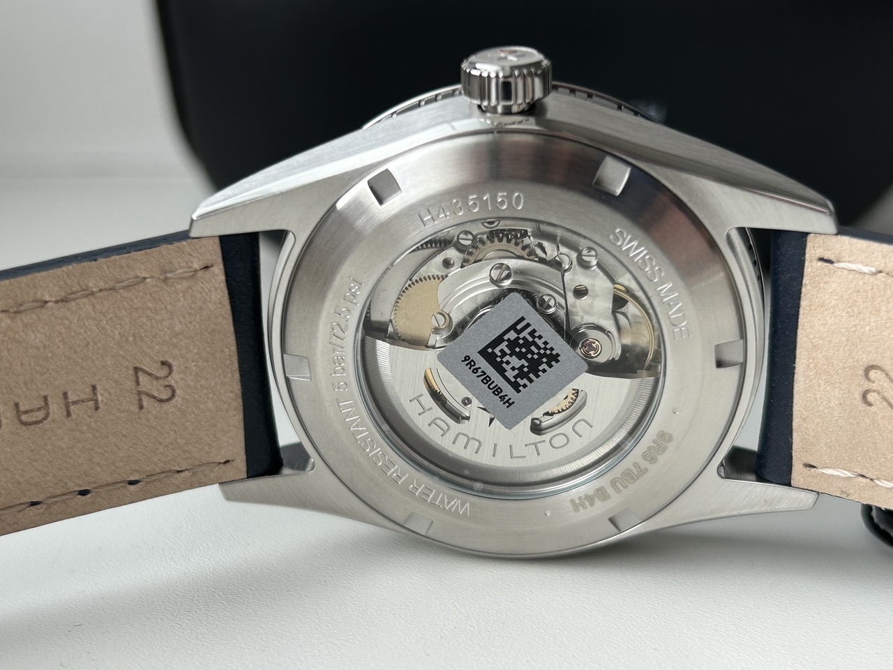 Современный точный швейцарский калибр H-30 с запасом хода 80 часов.