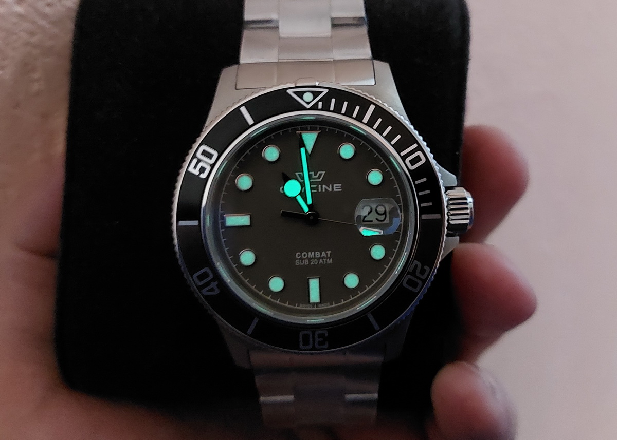 В защиту Glycine скажу, что по интенсивности и продолжительности свечения люма эти часы похожи на кварцевый Longines HydroConquest. Когда-то Гидроконквест этим меня сильно разочаровал, Комбату же готов простить. Лонжин дороже раз эдак в пять, а люм у них одинаково слабый…