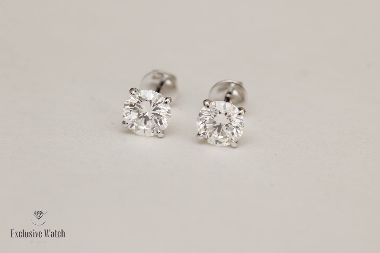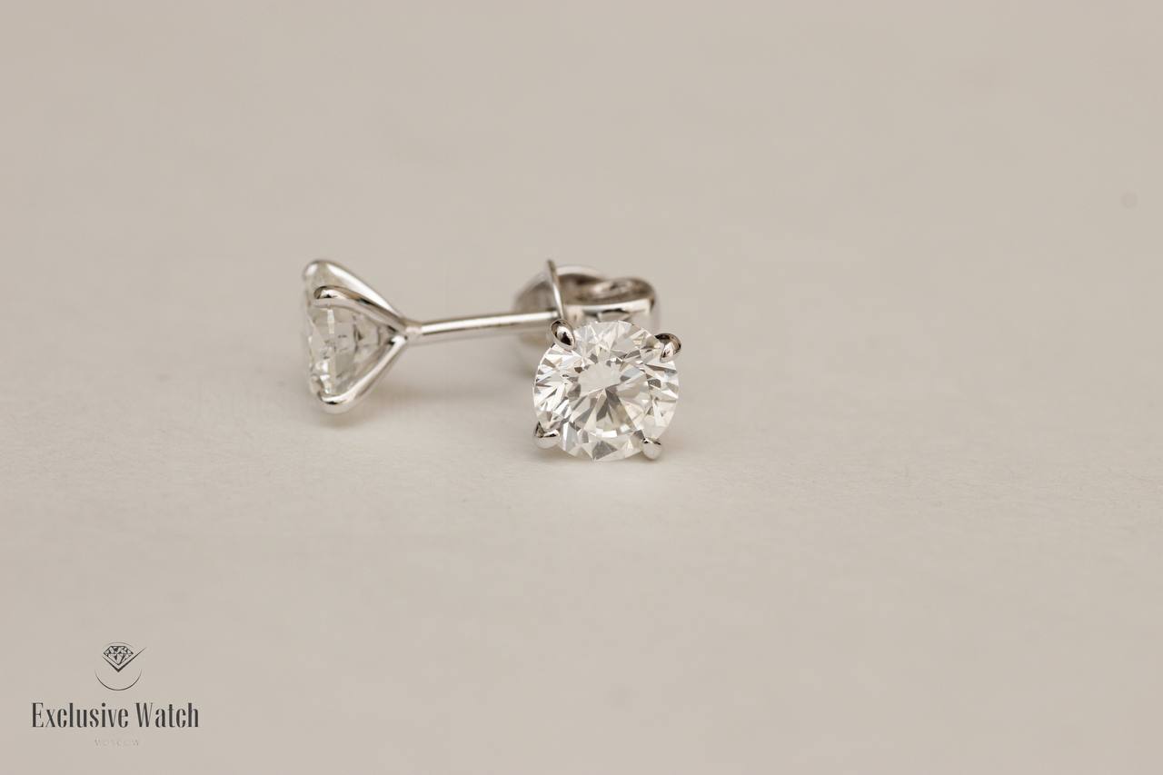 ПУСЕТЫ С ТОПОВЫМИ БРИЛЛИАНТАМИ ПО 1.00 CT G/VS2 В БЕЛОМ ЗОЛОТЕ 18К