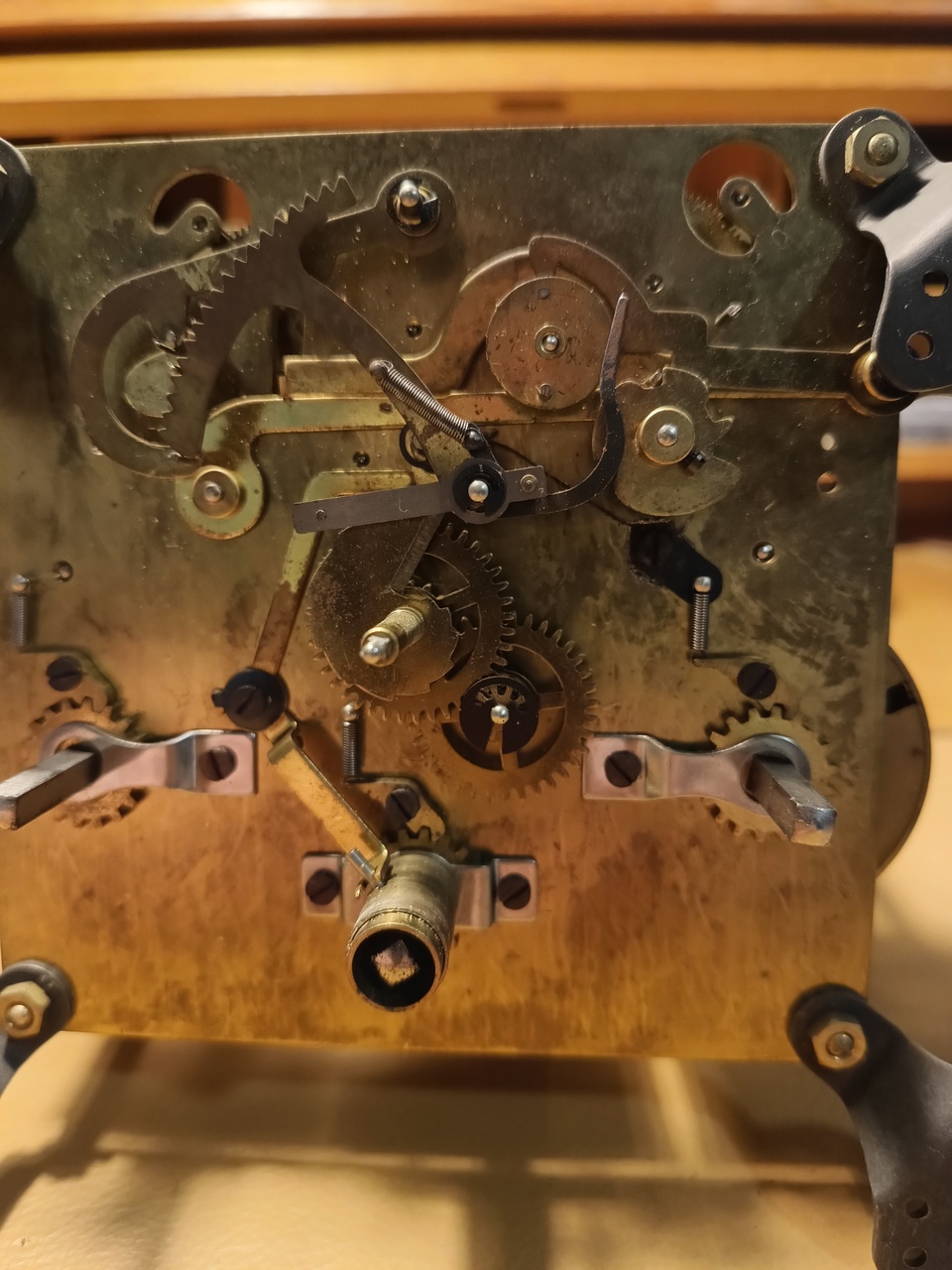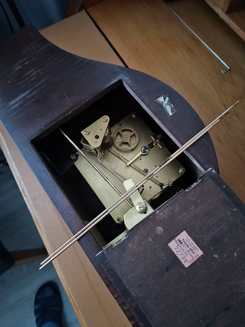 Механизм установлен, бой и струны тоже. Завел, качнул маятник и и часы пошли . Естественно останавливались пару-тройку раз. Приходилось немного регулировать.