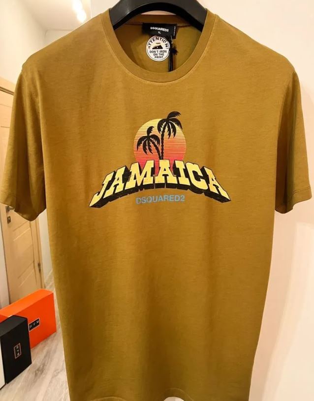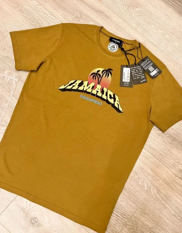 Футболка DSQUARED2 Новая с Бирками//горчичного цвета с ярким, разноцветным принтом/