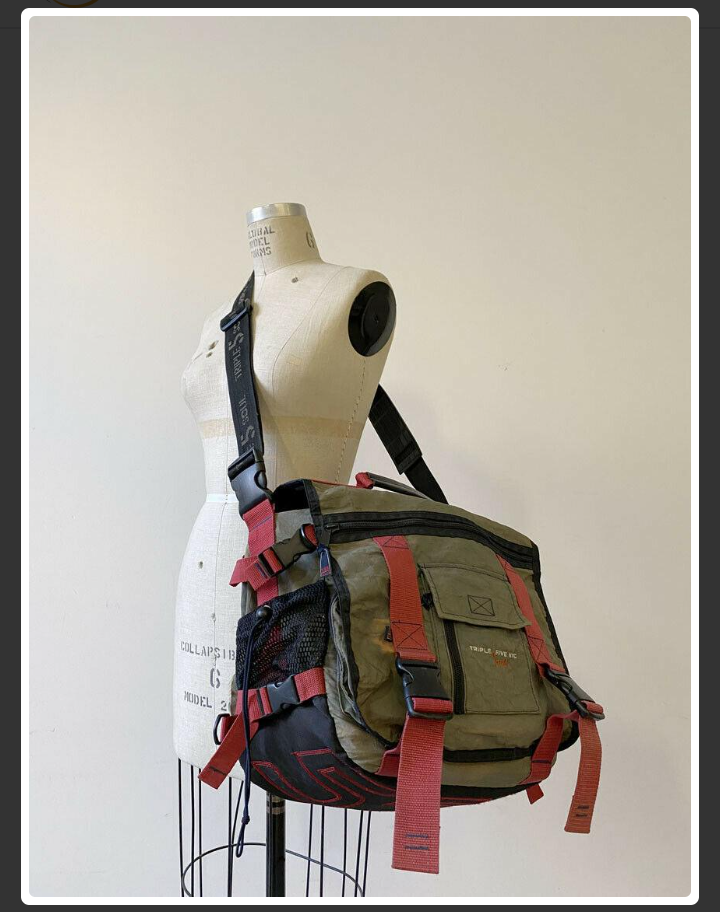 На фото примерно такая же сумка,она могла превращаться в рюкзак ,раскладывалась в ширину и вмещала до 120 виниловых диска,плюс отдел для лэптопа, так же имелся капюшон из гортекса который накрывал всю сумку полностью и тд.