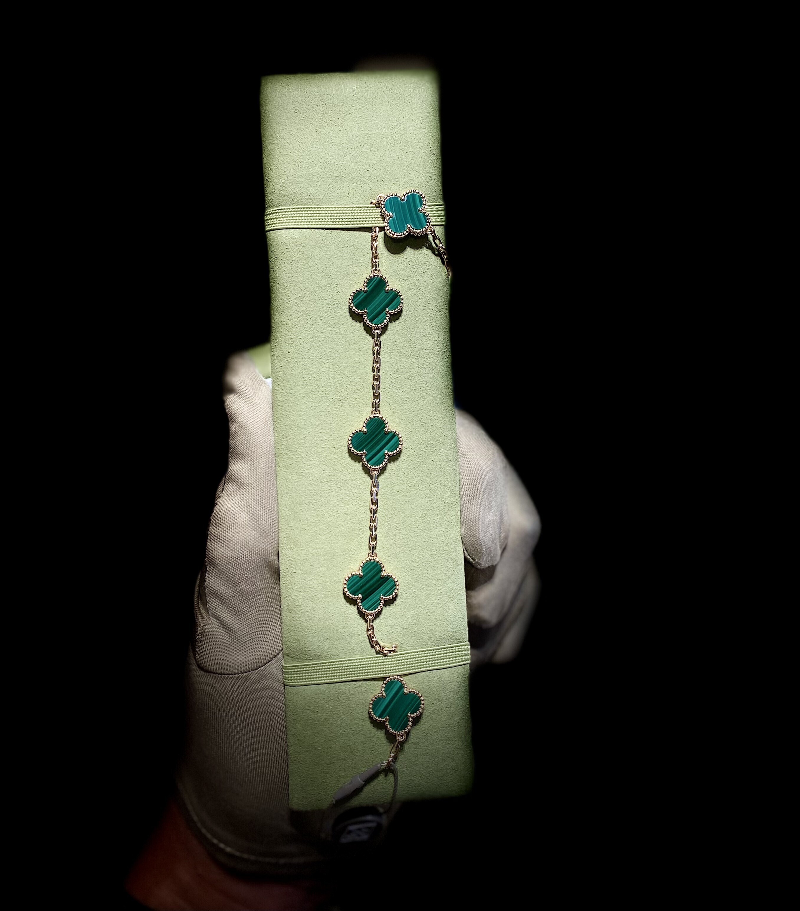 Самый востребованный браслет Van Cleef&Arpels:МАЛАХИТ! Самый большой дефицит и самый популярный цвет в коллекции Alhambra Van Cleef&Arpels! Браслет в размере Vintage!