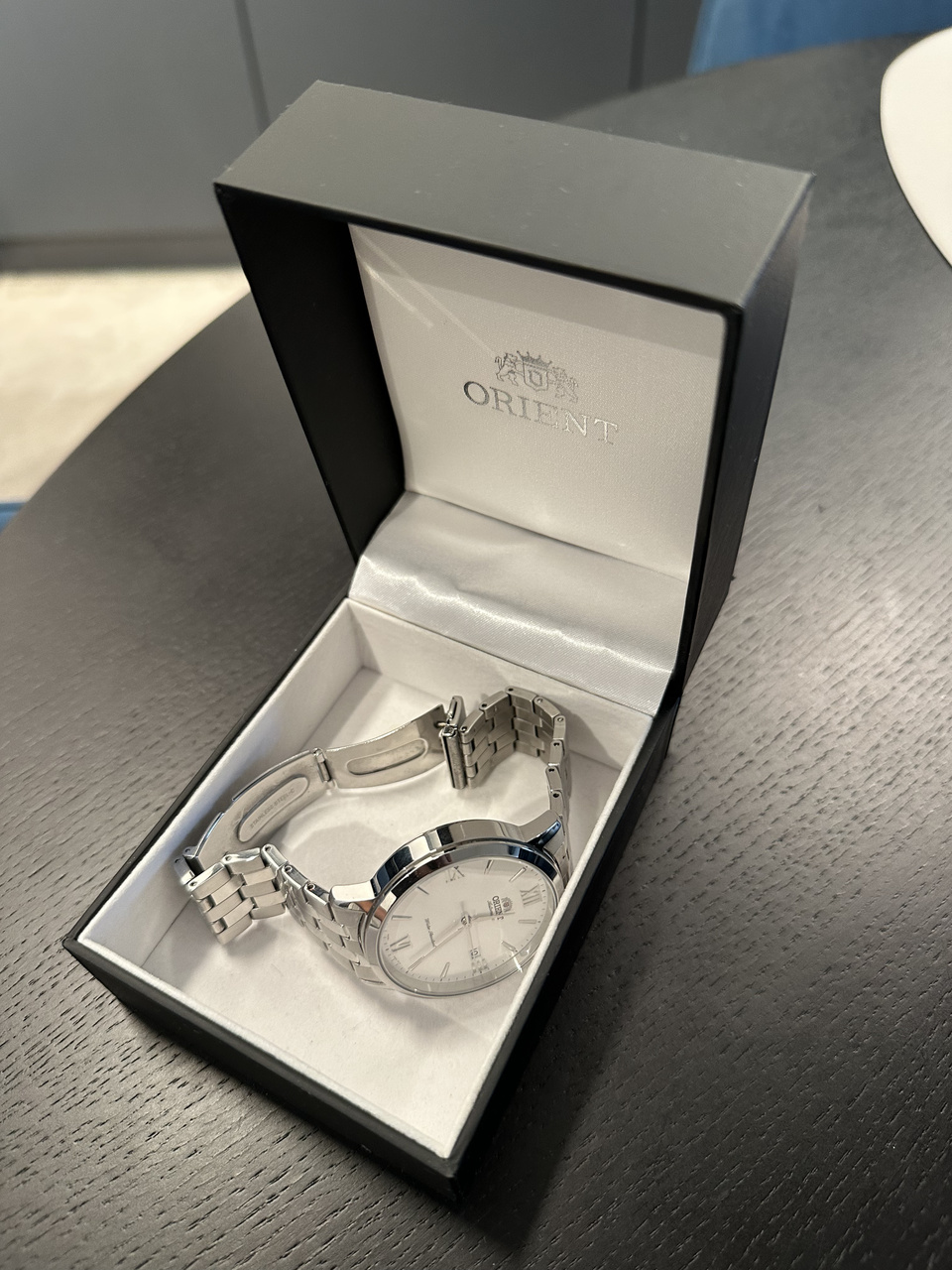Немного о часах. Я их очень долго выбирал, смотрел много обзоров и объездил все магазины в Москве, сравнивая часы в этой ценовой категории. Ориент, по моему мнению, оказались самыми породистыми, красивыми и солидными часами. За эту цену и даже выше ничего лучше из механики не нашел. Выглядят очень эффектно и с костюмом, и с джинсами, и в пир, и в мир