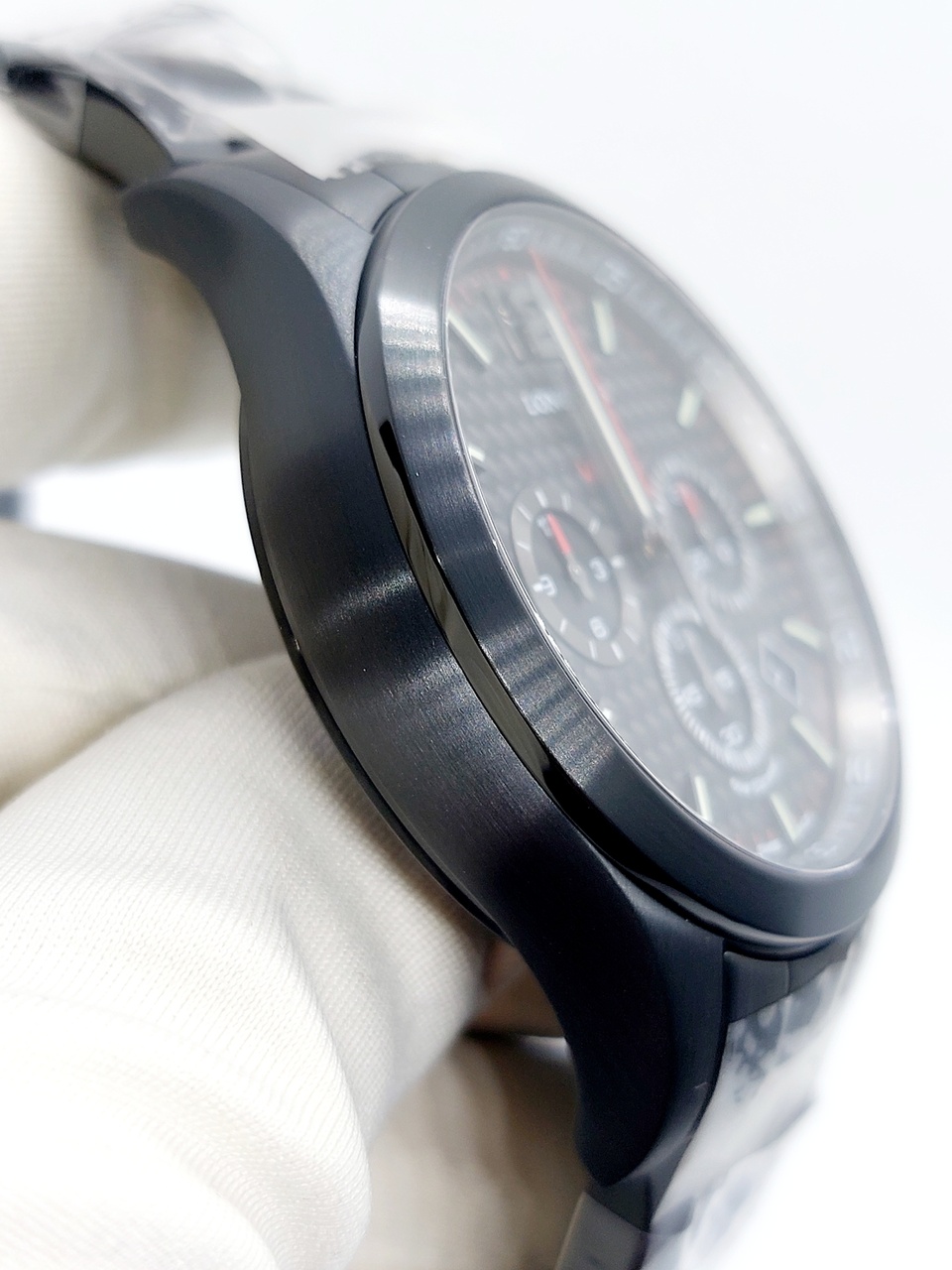 Корпус диаметром 44 мм изготовлен нержавеющей гипоаллергенной стали 316L с PVD покрытием черного цвета.