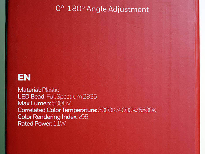 - 3 цветовые температуры: "тёплый жёлтый" (3000К), "белый" (4000K), "холодный белый" (5500К)