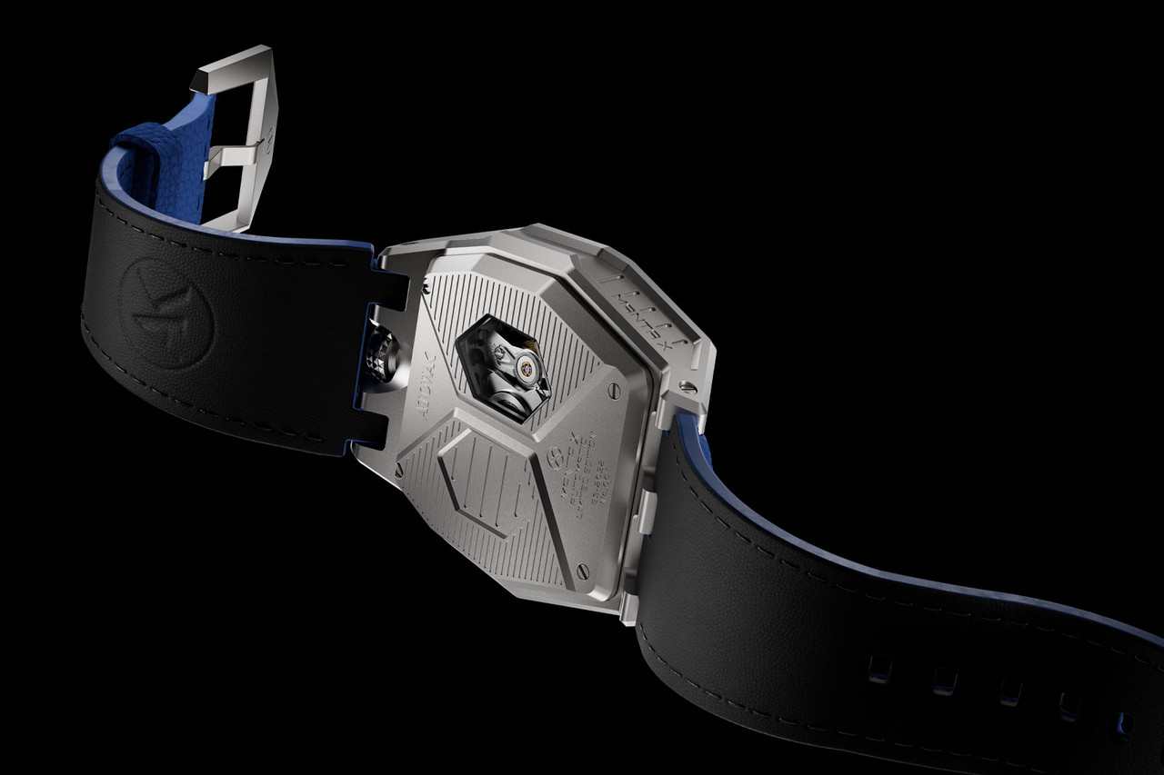 С возрождением высококлассного независимого часового производства у нас появился широкий выбор высококачественных механических механизмов. Один из самых впечатляющих новых механизмов, которые мы видели, установлен в скульптурных DC12 MaveriK от Дэвида Кэндо. Он представляет собой конструкцию с двойным балансовым колесом и специальным дифференциалом, соединяющим их. Дифференциал виден спереди, а сзади можно наблюдать за тем, как два балансовых колеса исполняют свой ритмичный танец. Симметричный и изогнутый калибр C30, разработанный и собранный собственными силами, использует титановые пластины и мосты и доводится до совершенства вручную.