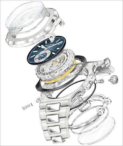 Корпус: из трех частей из розового или белого золота, сапфировое стекло в задней крышке