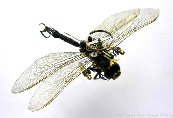 — Насекомых мне привозят из Африки, Китая, Новой Гвинеи и Бразилии. За каждое плачу по 5–10 долларов в зависимости от размера. Самые интересные экземпляры попадаются на Африканском континенте. Оттуда привезли 6-сантиметрового жука-палочника. Он весил 60 граммов. Наклеил ему на голову и спину блестящие медные детали от старых часов. Жук сразу стал похож на терминатора. А как-то привезли стрекозу с гигантскими крыльями. Хотел старыми деталями обклеить все ее туловище. Но не удалось — во время работы от нее остались одни крылья. Приладил их к детали от старой швейной машинки. Головой стрекозы стала швейная игла, а хвостом — старая пружина.