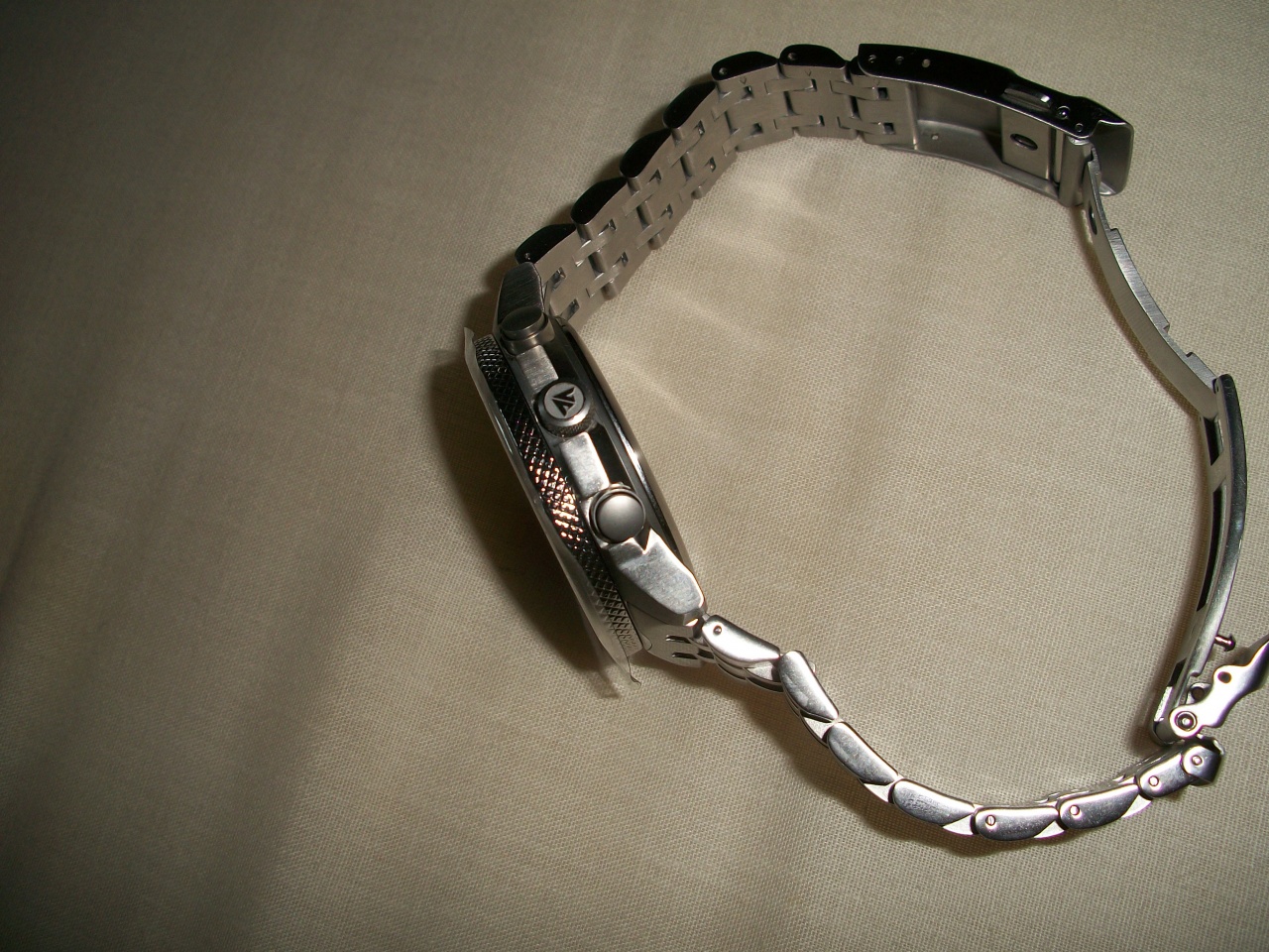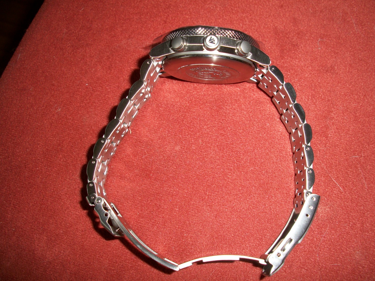 Первые впечатления: АХ!!! В жизни часы гораздо красивее, чем на фото, ну я думаю это касается большинства часов. Инструкция к калибру была припасена и изучена заранее, еще в процессе ожидания часов, так что проблем с "навигацией по меню" не возникло, все доступно и понятно. Единственное замеченное небольшое неудобство-это невозможность быстрого запуска секундомера когда часы находятся в режиме локал тайм. При его включении стрелки сначала переходят в режим основного времени(в моем случае это на два часа назад), а уж потом включается секундомер. Ну это я уже так... придираюсь. Очень красиво и ярко светятся в темноте. Теперь насчет собственно синхронизации: как уже писал в ветке Касио, днем сигнал не ловили вообще, вечером специально выставил неправильное время, а в три часа утра сами выставили точное франкфуртское время, но с усилителем. Ночью синхронизировались так же и в ручном режиме, но опять же с усилителем. Без него ловит слабый сигнал, но коррекция не происходит. Хорошо все же что взял с усилителем в комплекте. Браслет подогнал сам, пришлось убрать одно звено.
