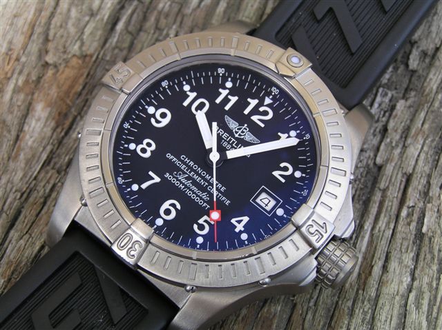 Breitling Avenger Seawolf. WR-3000,автомат, титан, титановый браслет, 44мм, толстые, массивные, гелиевый клапан. Такие, только с желтым цифером: