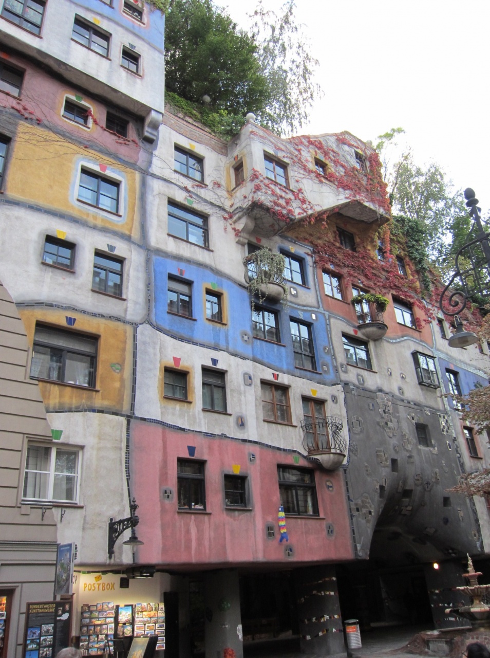Дом от концептуального австрийского архитектора Фриденсраайха Хундертваассера. Тема созвучна творчеству Антонио Гауди, сотворившего свои пластические чудеса несколько раньше, подробней по ссылке. Да и кому интересно, информацию найдет.