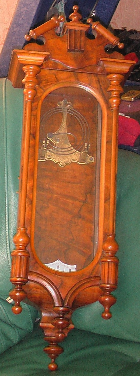 Часы настенные. На механизме надписи: "Exact" Freiburg i/SCHL № 213021 и 45. На гонге: Record~ Gong. Часы идут, но вместо пендельфедера медная проволочка (можно ли сделать из листовой бронзы?). Достались от деда в наследство.