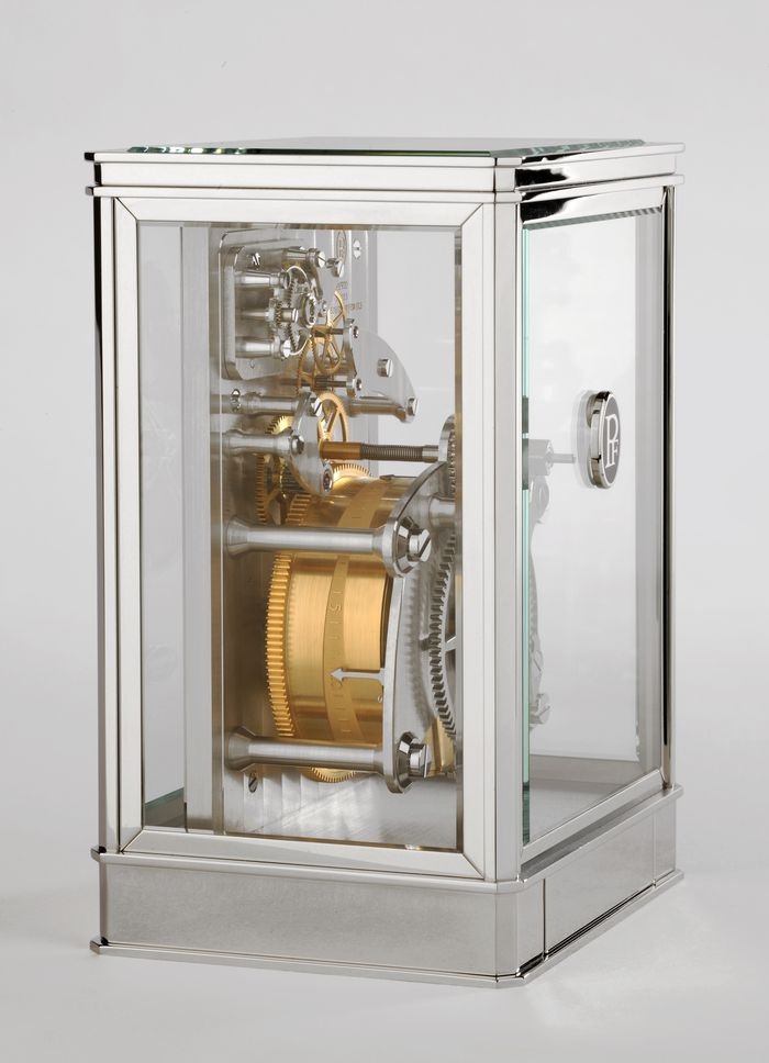 Мануфактура Parmigiani Fleurier объявила о выпуске настольных часов с новой системой указания запаса хода. Модель, созданная Мишелем Пармиджиани и его подопечными, называется 15 Jours – это значит, что при полном заводе барабана часы могут работать чуть больше двух недель.