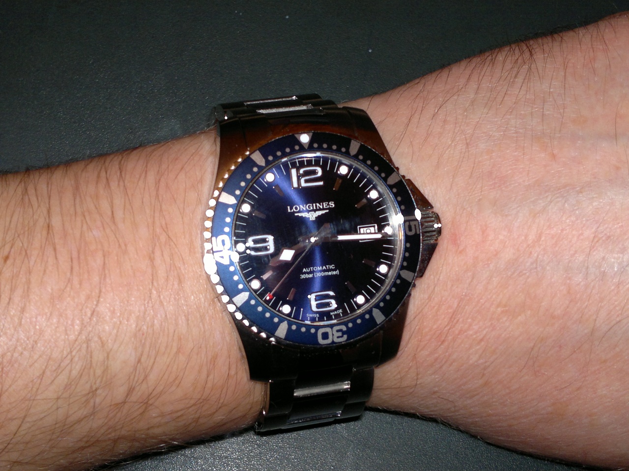Принимайте в ряды Longines. Мой первый Longines hydroconquest l.3.695.4.03.6. Купил за 40500р в Тайм Авеню на Петровке. До этого носил Tissot 8-лет, не вылазил из них, калибр (2824.2 очень надежный, много чего пережили, да и кто купил доволен, как слон). Но мечтал о часах, что бы можно было плавать, а то мои старые тиссот под дождем сразу запотевали внутри, да и классика была, под шорты на пляж не наденешь. А тут день варения на носу и решил я себе сделать подарок, т.е заняться поиском часов. Перелопатил весь интернет, бренды перечислять не буду, так как их ну ооочень много было, от 30т.р до 60т.р это был мой лимит, за который переходить не мог. Выбирал часы 2-месяца, в итоги выбрал золотую середину ,бренд , узнаваемость и надежность LONGINES ВОТ КАК ТО ТАК Я ВЫРАЗИЛ СВОЮ РАДОСТЬ...