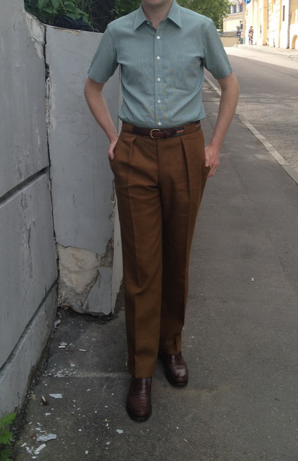 Ну OK -- вот ещё одна деталь. Брюки другие, крой абсолютно идентичный, интересно авторитетное мнение по шлёвкам для ремня. Не являются ли они анахронизмом в этом сезоне и кто что скажет за такую их ширину?