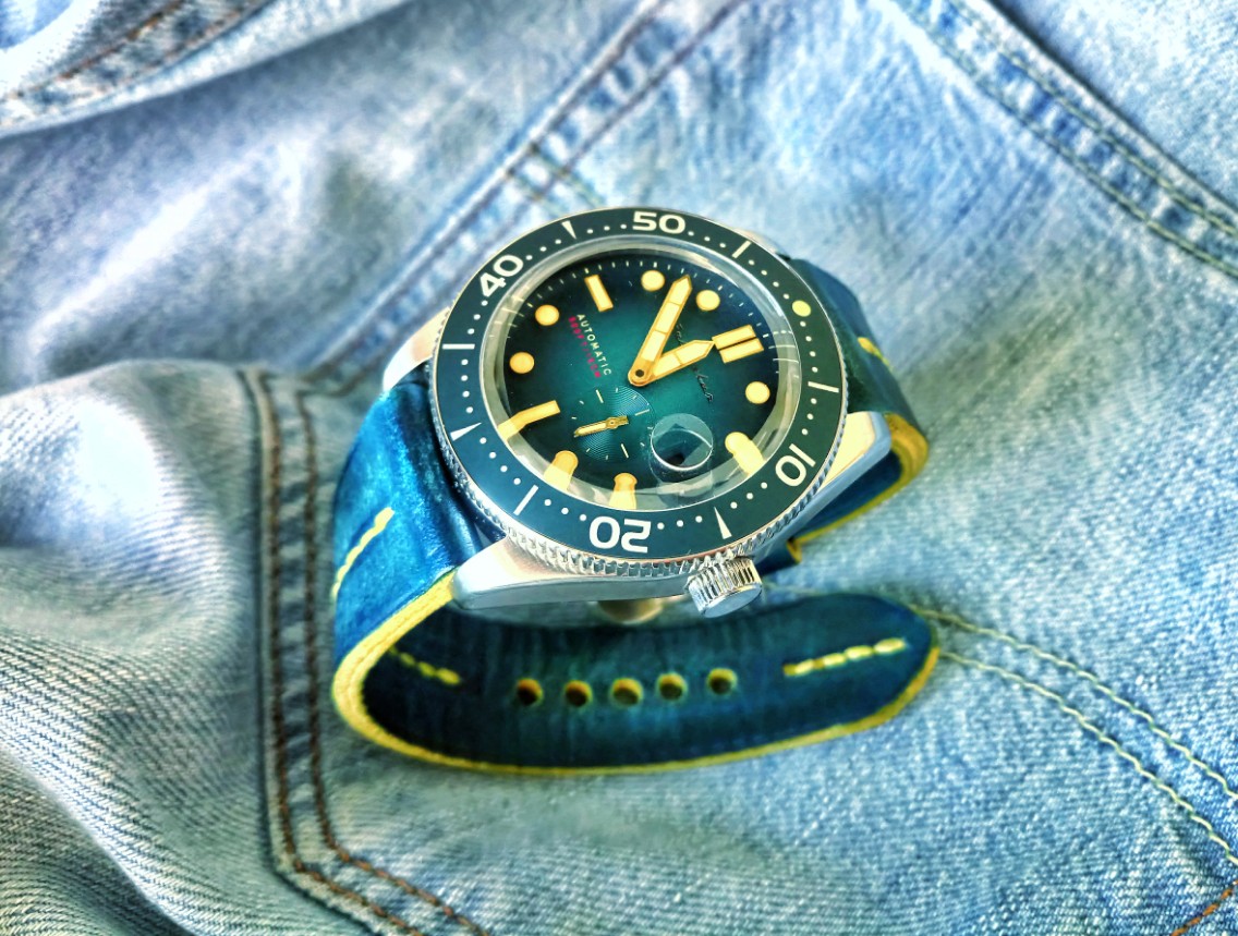 | ПАМ 359 на джинсовом ремешке, титановая перегретая пряжка. |