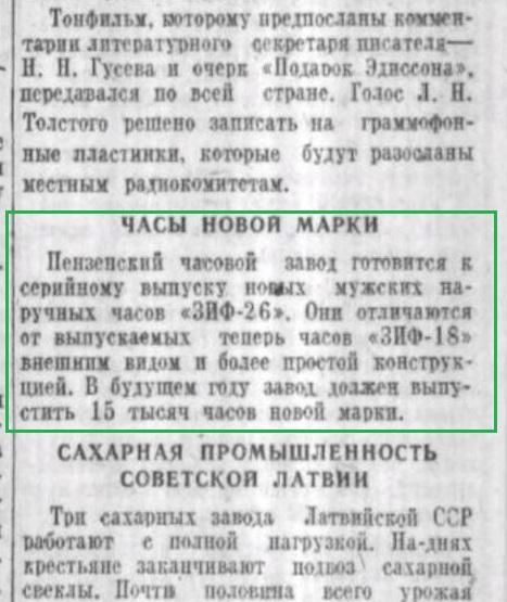 Более того, существуют часы LIP Brevet 50-х в которых заимствованный калибр-автомат, ясно промаркированный как "R-26", что тоже не добавляет уверенности в том, что тот калибр, который по легенде попал в Пензу в 1930-х, назывался точно так же.