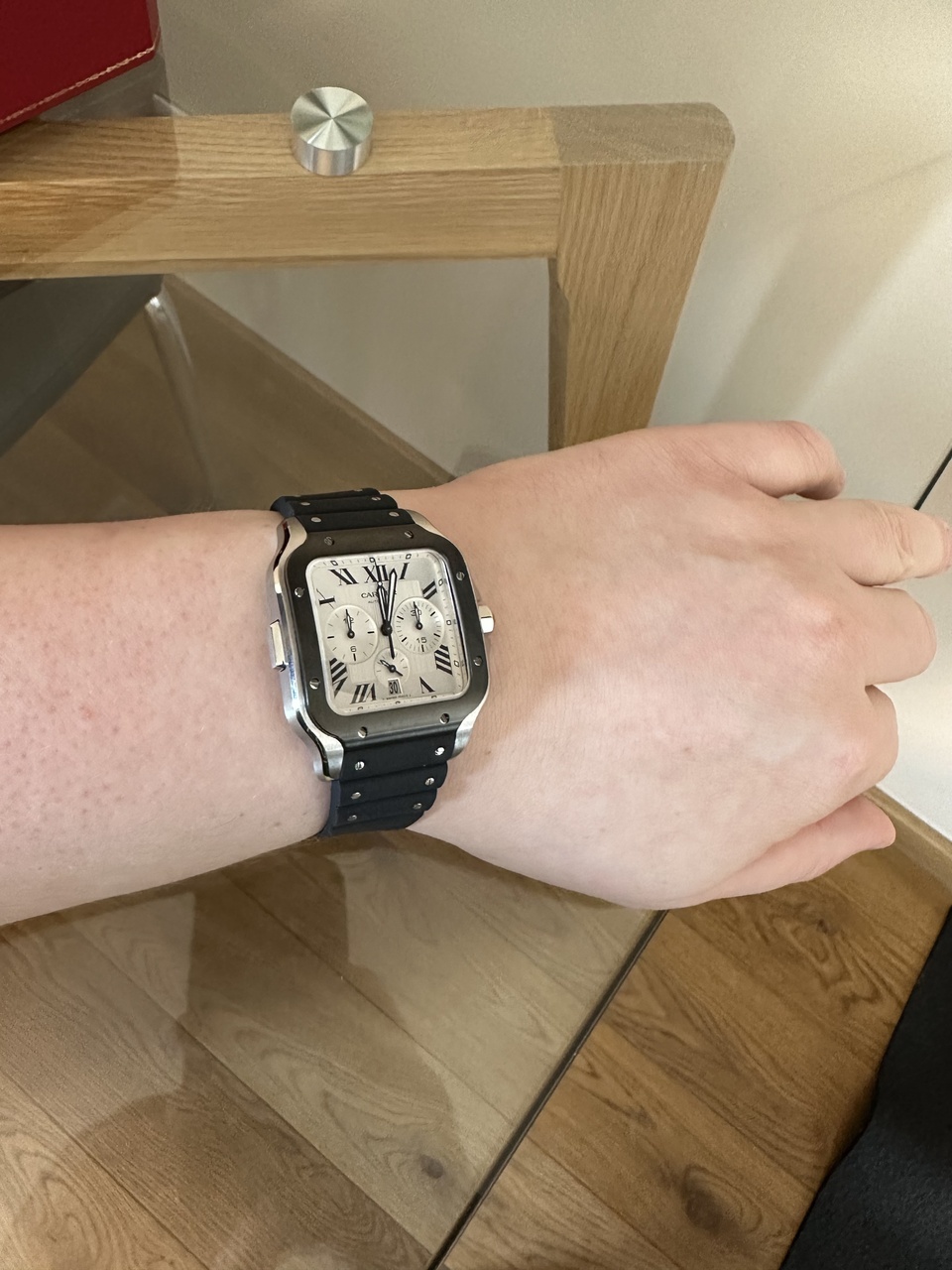 Не рассуждайте на цифрах, нужно примерять. Квадратные часы крупнее круглых в том же диаметре. Например TANK MC очень крупные часы несмотря на заявленные размеры.