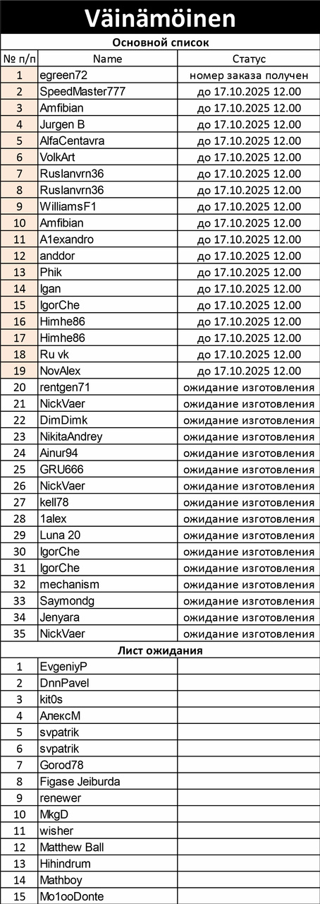 A1exandro (14.10.2025), AlfaCentavra (14.10.2025), Amfibian (14.10.2025), DimDimk (14.10.2025), EvgeniyP (15.10.2025), GRU666 (14.10.2025), Igan (14.10.2025), IgorChe (15.10.2025), Jurgen B (14.10.2025), Kaifolog (14.10.2025), kell78 (14.10.2025), max888 (14.10.2025), Meny (14.10.2025), MiSV (14.10.2025), NickVaer (14.10.2025), NikitaAndrey (14.10.2025), NovAlex (15.10.2025), Roman VM (15.10.2025), Ruslanvrn36 (14.10.2025), somik7 (14.10.2025), svpatrik (15.10.2025), Topoley (14.10.2025), VolkArt (15.10.2025) | ||
