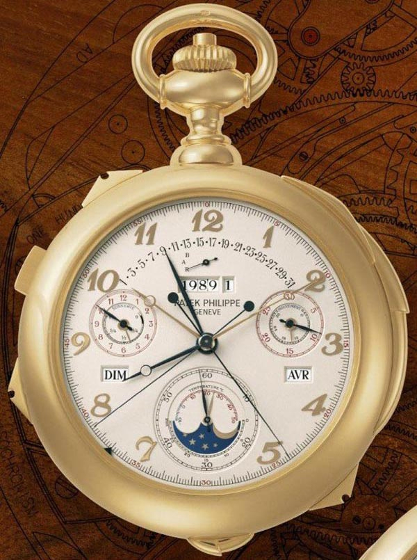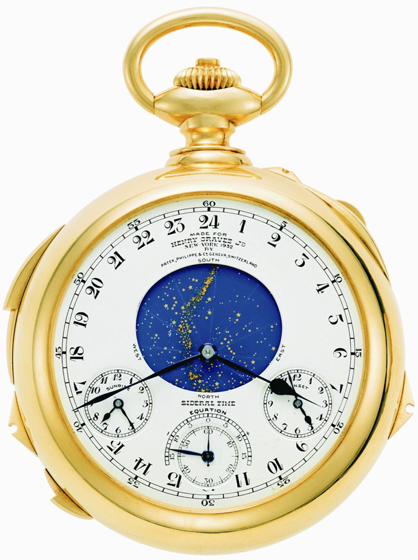 Абсолютный рекорд цены удерживают золотые карманные часы Patek Philippe The Graves Supercomplication с 24 усложнениями 1933 года выпуска. Генри Грейвз-мл. умер в 1953 году, а в 1968 году его наследники продали уникальный экземпляр в Музей Времени в Рокфорде. Когда в 1999 году музей закрылся, вся экспозиция была выставлена на торги Sotheby's. Все вместе они обошлись новым владельцам в 28 миллионов долларов. Этот же экземпляр, оценивавшийся предварительно «всего» в 3-5 миллионов, был приобретен анонимным коллекционером за 11 003 500 долларов.