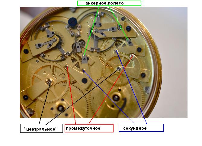 а так, практически в 100% современных механизмов цапфы анкерного колеса, вилки и баланса расположены на прямой