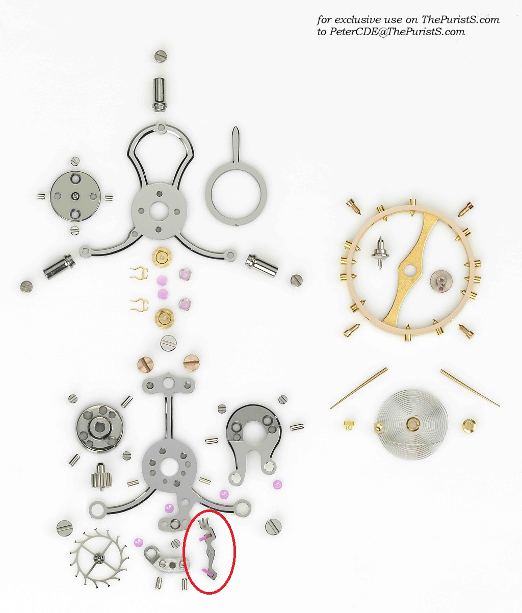 ангренаж в Бреге не весь четко просматривается, некоторые колеса под платиной