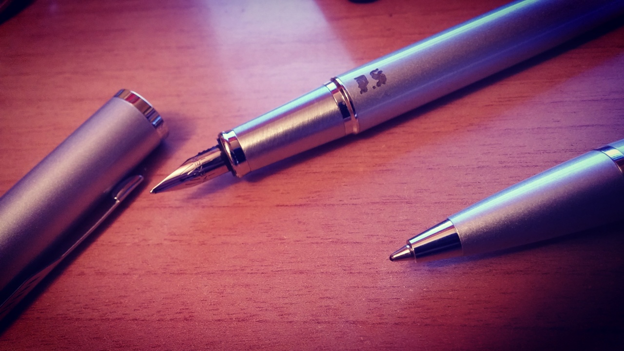 Ручкой пишу часто, поэтому перьевая. Нет нажима - рука не устает. Нравится тонкая линия - поэтому японские перья.