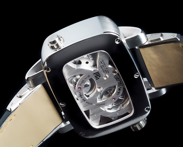 С оборотной стороны механизма сверхкрупные рубиновые камни, закрепленные в полированных золотых шатонах, контрастируют с узором «Женевские волны», нанесенным по всей поверхности изящно изогнутых мостов. Напоминая крупные камни, использовавшиеся в богатых механизмах старинных карманных часов, рубиновые подшипники, меж тем, имеют важное практическое значение, т.к. увеличивают износоустойчивость механизма, служа опорой зубчатым колесам большого диаметра и удерживая больше смазочного масла.