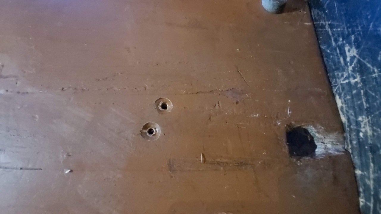 4. Далее корпус был полностью покрыт шпаклевкой на основе цемента или чего то такого. Полагаю уже лет 100 назад был так обработан. Неровности сборки были так же компенсированы очень болььшими кусками цемента. И покрашен.