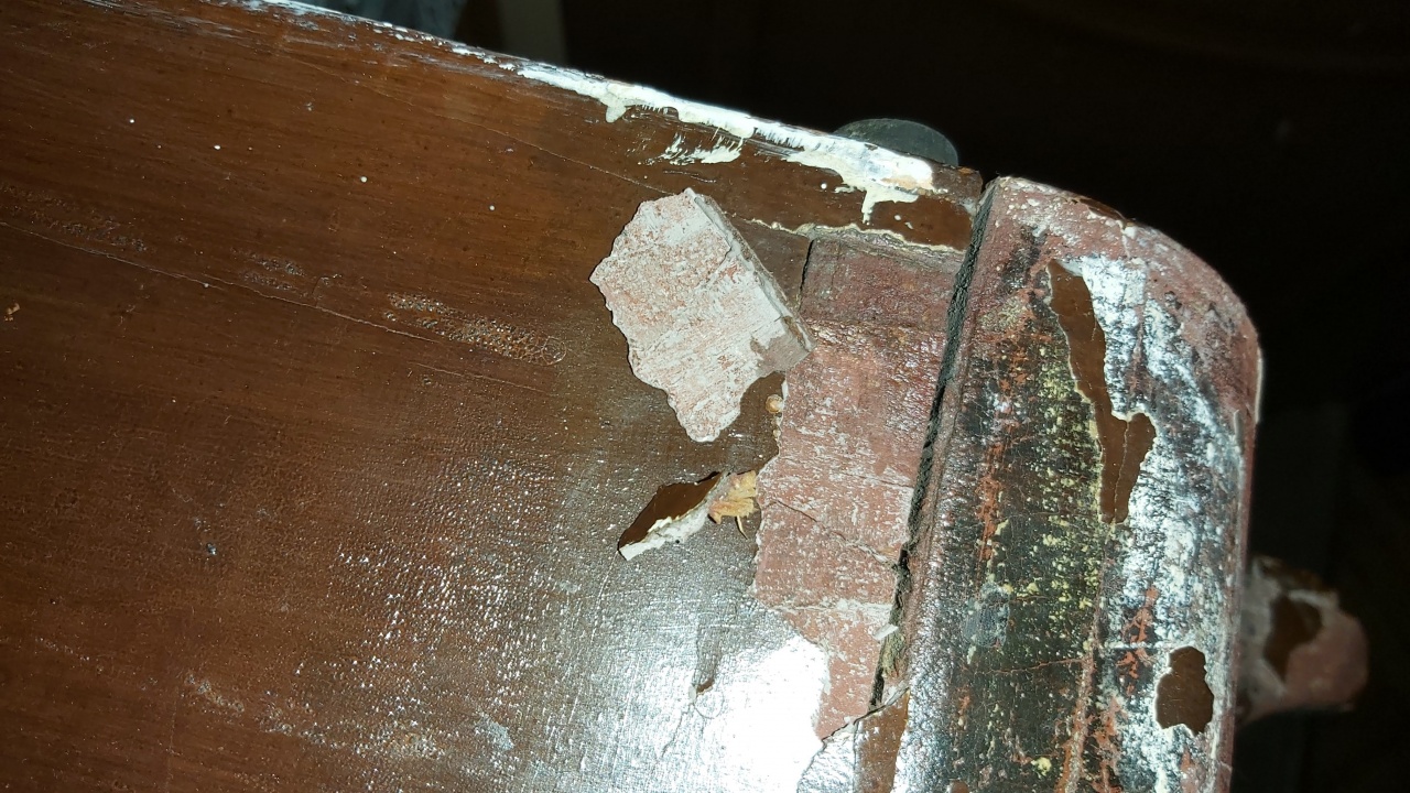 По длальнейшему плану - планирую сначала очистить от краски в доступных местах. Собрать, полюбоваться как это смотрится. После чего буду разбирать корпус как минимум частично и соберу правильно. Сами деревяшки в приличном состоянии в плане что не рассохлись и сохранили свою геометрию, не считая покрытия, конечно. Более я не планирую восставнавливать шпон или красить чем то. Удалю лишнее, отшлифую минимально где требуется, подклею оставшийся шпон и возможно покрою воском для консервации. Вот так, буду рад любым советам и критике.