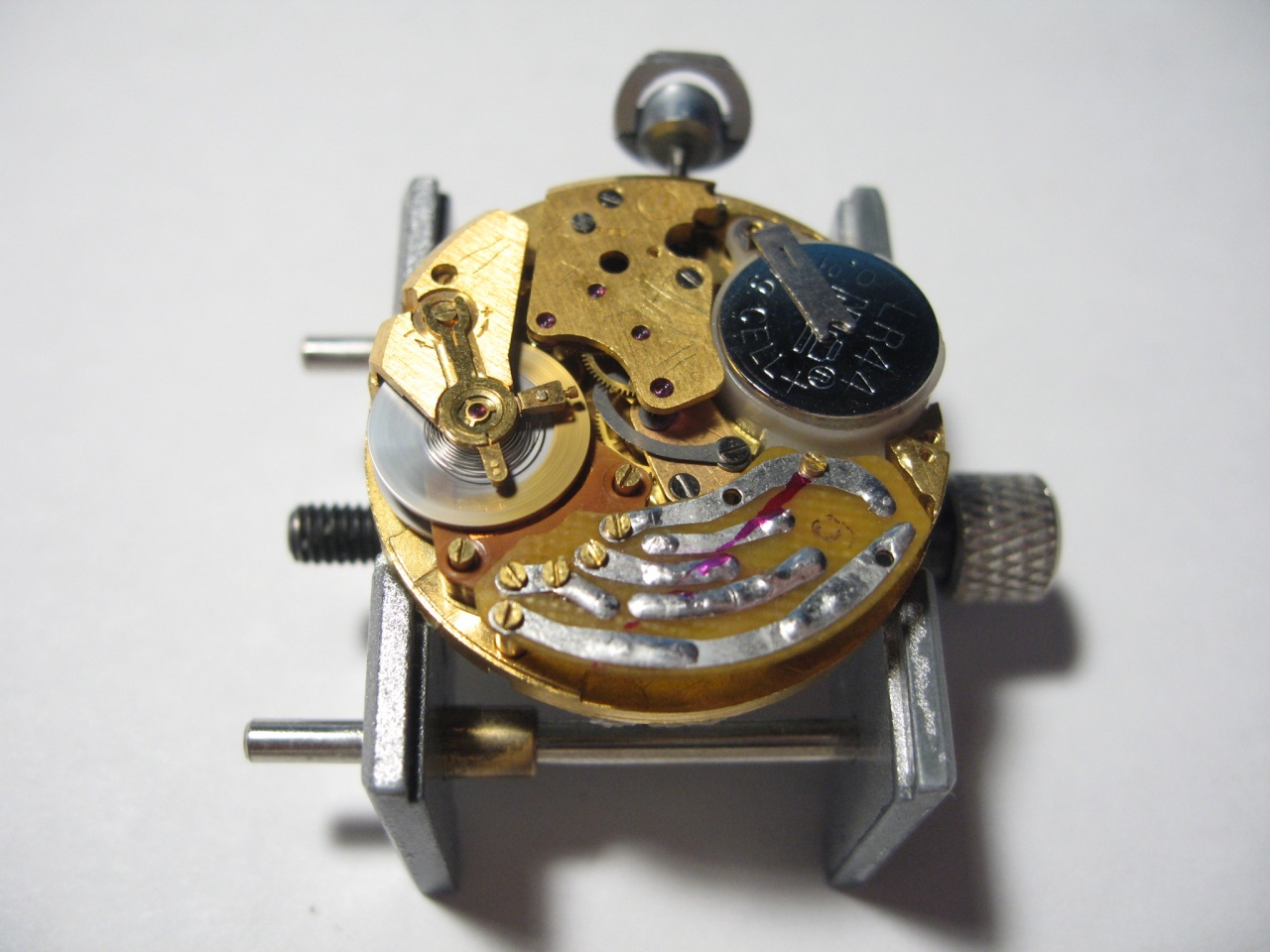 Катушку закрепил свежим лаком в рожках не прикасаясь. Придумал форму прокладки из тонкого фторопласта, чтобы не снимая катушку подложить под опоры, под микроскопом выводил катушку между щечками баланса по высоте... Собрал... А потом настройка... Осциллограф, ноутбук со звукоснимателем от гитары... Точность вывел в 0. Главное, как уже писалось уважаемыми форумчанами, - РЕЗОНАНС. Будет резонанс - будет и точный ход.