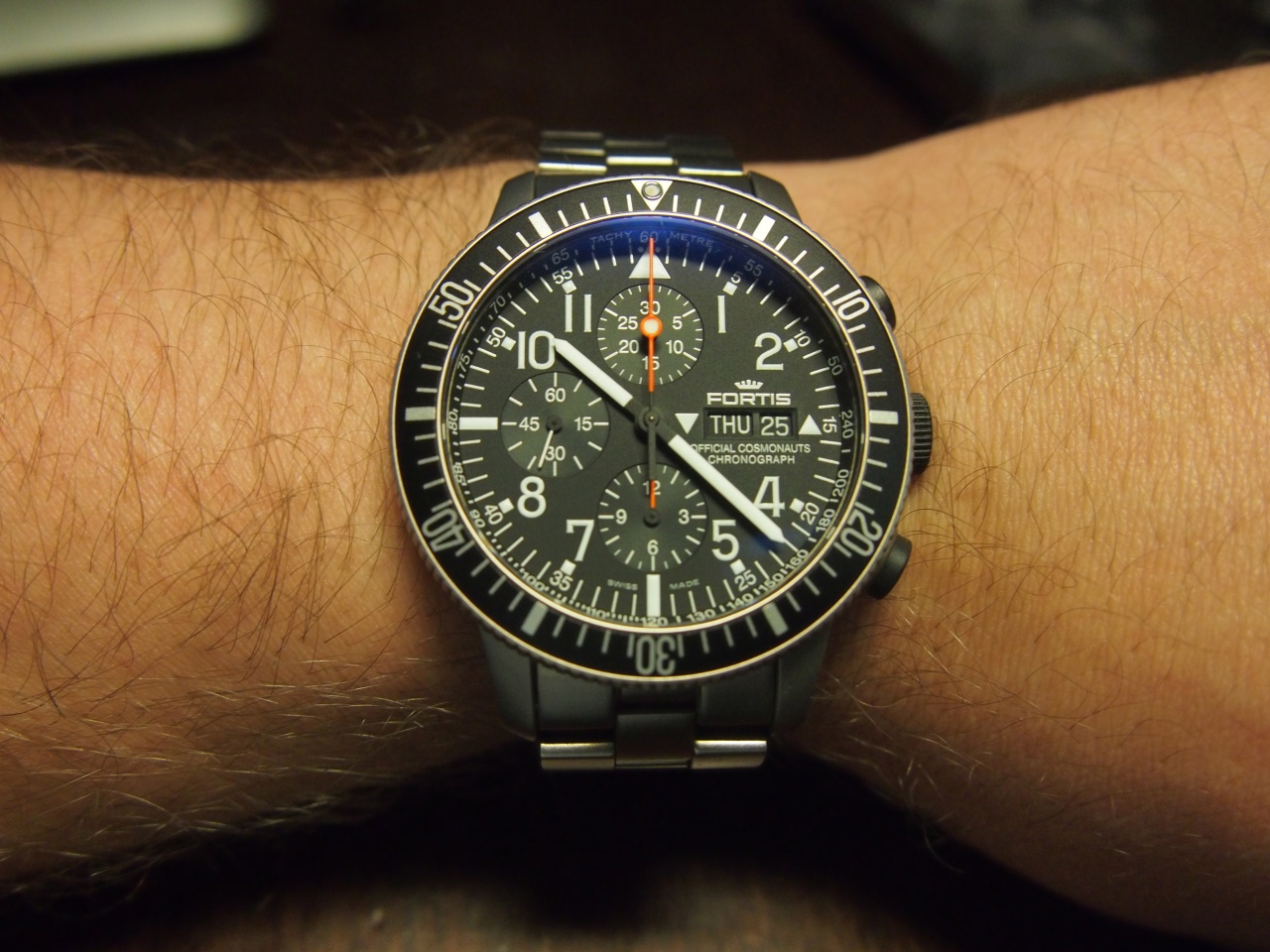 Fortis IQ, Fortis LE Andora Mir 97, Rolex Explorer II Orange Hand White Dial, Omega PO 9300, Breitling: Navitimer, Hercules. Seiko: Astron, Premier Kinetic. Zodiac. Citizen Campanola 201.