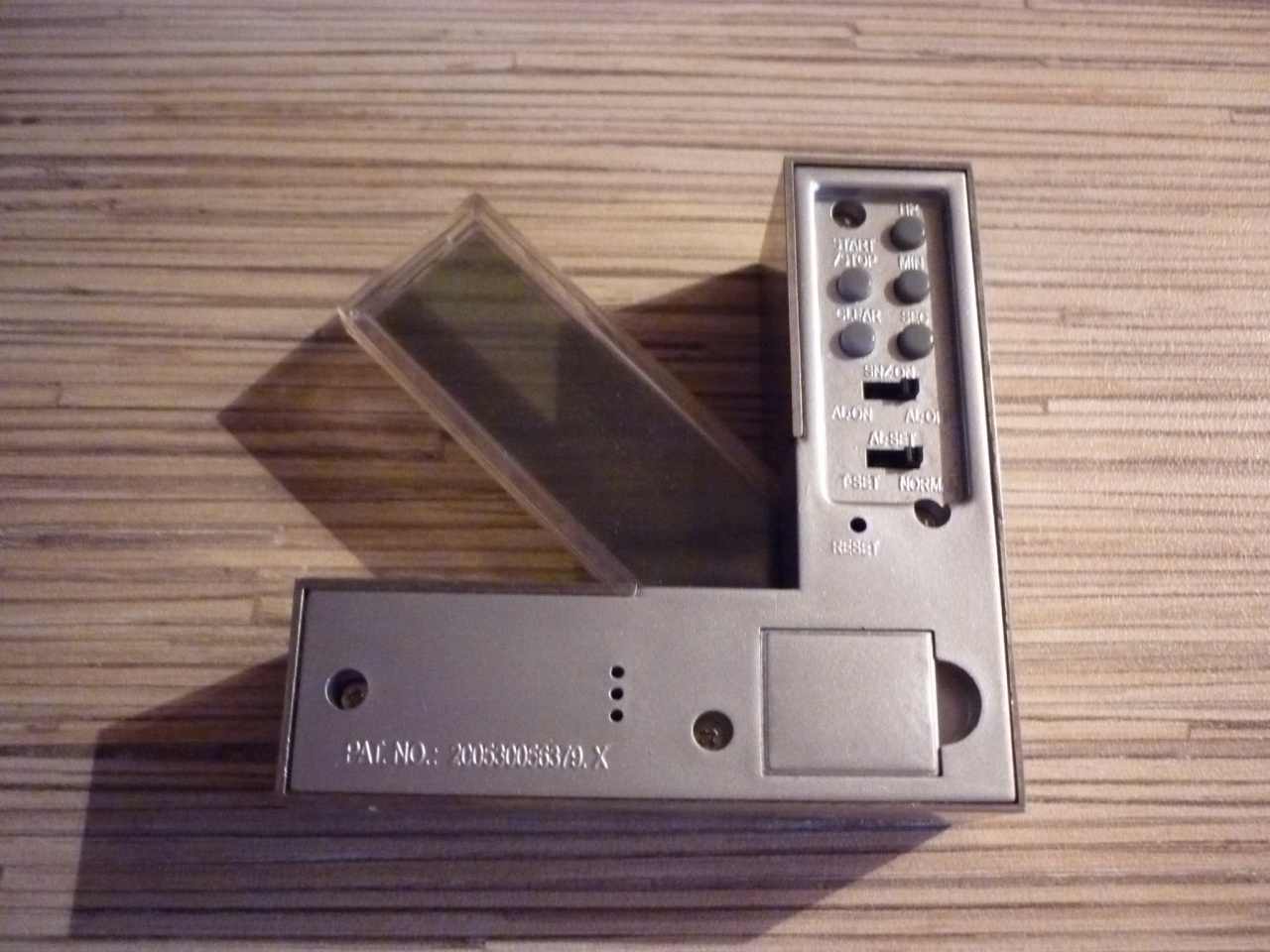 Нашел дома в закромах вот эти часики – несмотря на своеобразную форму, судя по элементам управления, это все же часы, ). Было интересно во всех ли современных "маленьких цилиндриках" кристалл кварца в форме вилки камертона – если уж в таких наибюджетнейших он будет таковым, то, надо полагать, во всех.