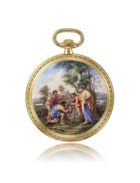 Посетители музея смогут ознакомиться с историей мануфактуры и высокого часового искусства города Женева. Первая столь крупная выставка наследия Vacheron Constantin рассказывает о более чем 250 годах непрерывной работы мануфактуры, о ее креативных и технологических решениях, дает полное представление о развитии часового дела во времени. Выставка дает возможность окунуться в мир 18 века, понять процесс создания сложных хронометрических приборов часовщиками той эпохи, именовавшимися тогда «кабинотье», получить представление о том, как эволюционировали технологии измерения времени с тех пор по настоящий день, как постепенно возникали новые профессии, востребованные в часовом деле. На 600 кв. м, которые займет экспозиция, посетители смогут увидеть 180 исключительных экземпляров часов, принадлежащих женевской мануфактуре. Кроме того здесь же будут выставлены исторические документы компании, архивы, датируемые 18 веком, старинные инструменты кабинотье, машины, изобретенные Жоржем Августом Лешотом (Gerges Auguste Leschot). «Сокровищница Vacheron Constantin» – не просто хорошо организованная и интересно оформленная выставка. В течение нескольких дней после открытия экспозиции несколько талантливых часовых мастеров мануфактуры поделятся секретами своего мастерства с посетителями. Гравер, ювелир, эмальер, специалист по гильоше и часовщик будут присутствовать на выставке, демонстрируя наглядно, что технологии, унаследованные компанией Vacheron Constantin, не только сохраняются, но и развиваются, творчески используются при создании современных шедевров часового искусства. Тем, кто не окажется с 24 июня по 14 августа 2011 года в Национальном музее Сингапура, мы предлагаем несколько экспонатов будущей выставки. № 10198 Карманные часы, 1755 г. Серебро, эмалированный циферблат, диаметр 4,5 см, калибр 16’’, фузея, завод и регулировка с помощью ключа. Первые известные карманные часы, изготовленные основателем мануфактуры. Механизм с выгравированной надписью J:M:Vacheron A GENEVE № 112294 Карманные часы, 1914 г. Калибр RA 21’’ рычажный спуск, спираль бреге, 46 камней, сплит-хронограф, вечный календарь, фазы луны, минутный репетир с тремя гонгами, отбивающий время по запросу. 18К желтое золото, эмаль, эмалированный циферблат, на задней крышке изображен герб кроля Египта Фуада I, диаметр 6,75 см. Карманные часы, подаренные швейцарской колонией в Египте королю Фуаду I в 1929 г. № 10727 Карманные часы, 1778 г. Серебро, эмалированный циферблат, линейная гравировка на корпусе, диаметр 4,5 см, калибр 16’’, фузея, завод и регулировка с помощью ключа. № 10659 Карманные часы, 1923 г. Калибр 18’’, рычажный спуск, 18 камней, ручное декорирование. Желтое золото, эмаль, эмалированный циферблат, механизм из золота с линейной гравировкой, инкрустация бриллиантами, декорированный ободок, на задней крышке эмаль-миниатюра репродукция картины Николя Пуссена «Пастухи Аркадии», выполненная женевским мастером-миниатюристом эмальером 20 века Мари Голль (Marie Goll), вторая задняя крышка с гравировкой в технике чеканки, представляющей пасторальную сценку, диаметр 5 см. № 10439 Карманные часы, 1830 г. Калибр 19’’, цилиндрический спуск, плоская блалнс-спираль, завод и регулировка с помощью ключа. Желтое золото, серебряный позолоченный циферблат, гильошированный корпус, гравированная боковая часть корпуса в технике чеканки, различные паттерны гильоше 