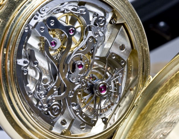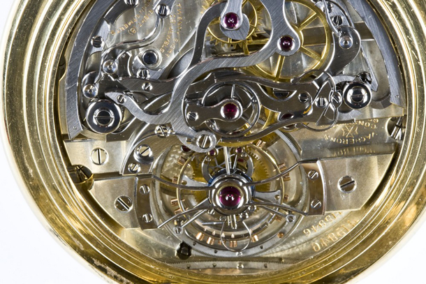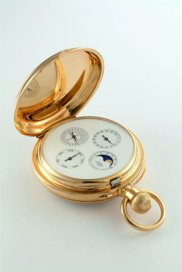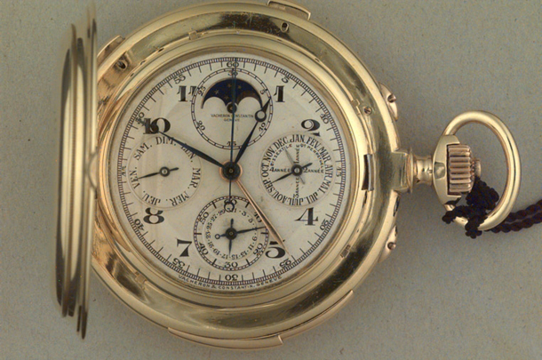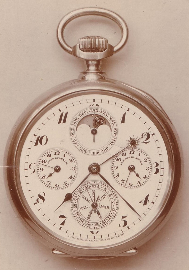 Vacheron Constantin – мастер усложнений, многие модели которого стали вехами в истории изготовления часов. Стоит разобраться: что именно принято считать усложнением? Согласно словарю часового дела Бернера часами с усложнением считаются «состоящие из большого количества компонентов: хронограф и репетир – это часы с усложнением». Заглянув в Википедию, можно прочесть: «В часовом деле определение усложнения относится к любой особенности часов, кроме индикации часов, минут и секунд». Это определение исключает наявность приспособлений для более точного хода механизма, например, турбийона. Итак, что-либо большее, чем индикация времени и турбийон, принимается за усложнение. Первые часы с усложнением (механизм подписан Vacheron a Geneve) в форме мальтийского креста датируются 1790 годом. Часы указывают день недели и дату на красиво гравированном циферблате. В 1810 году были выпущены первые карманные часы с минутным репетиром. В 1824 году мануфактура выпустила тройной календарь, в 1884 был выпущен великолепный вечный календарь с уравнением времени, в 1913 году к вечному календарю добавились функции времени восхода и заката солнца. Раздел I - Карманные часы В обратном порядке рассмотрим пятерку самых сложных часов в этой категории от VC 5) 7 усложнений – 1905 год: Сплит-хронограф Минутный репетир День недели Дата Месяц Вечный календарь Фаза луны В конце 19-го века Vacheron начал выпускать часы с различными усложнениями: минутным репетиром, вечным календарем или хронографом. Но создание самых первых сложных часов датируется 1905 годом. Это был вечный календарь (индикация 48 месяцев вместо привычных 12-ти с индикатором цикла високосного года) с минутным репетиром и сплит-хронографом. В 1901 году мануфактура выпускала подобные часы, но с простым хронографом. Экземпляры, подобные этому, выпускались под заказ и являются уникальными в своем роде. 4) 9 усложнений – 1932 год: Сплит-хронограф День недели Дата Месяц Индикатор цикла високосного года Вечный календарь Фаза луны Турбийон Индикатор запаса хода Выпущенные в 1932 году эти часы являются единственными карманными часами Vacheron Constantin с большим количеством усложнений в которых есть турбийон. Его регулировка была доверена Эдмунду Оливье, который был не только прекрасным часовым мастером, но и настоящим виртуозом по части регулировки механизмов. Одной из отличительных особенностей этих часов является то, что на точность механизма не влияет функция хронографа. В 1934 году часы получили 1-й приз после испытаний в Женевской обсерватории, а в 1939 году были представлены на Национальной Швейцарской выставке в Цюрихе. 3) 9 усложнений – 1928 год: Минутный репетир карильон (3 молоточка) Сплит-хронограф День недели Дата Месяц Индикатор цикла високосного года Вечный календарь Фаза луны Будильник Выпуск этих часов начался в 1914 году и был завершен спустя 14 лет в 1928 году. В 1948 году часы были проданы графу Guy de Boisrouvray кузену принца Монако Rainier III. Считается, что часы хранились среди семейных ценностей, пока не были проданы в 2003 году по впечатляющей цене 1 103 500 швейцарских франков. Эти часы впечатляют не только большим количеством компонентов – их 657, но и одиннадцатью стрелками. Это одни из двух чрезвычайно усложненных часов Vacheron Constantin, оснащенные будильником. Другим интересным элементом этих 66-миллиметровых часов является их спуск. Часы оснащены баланс