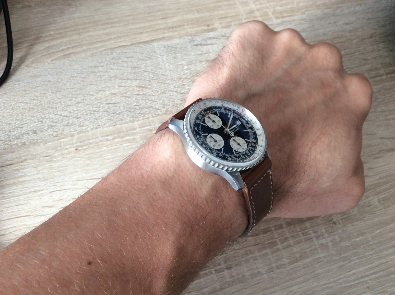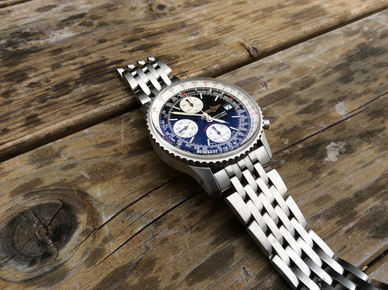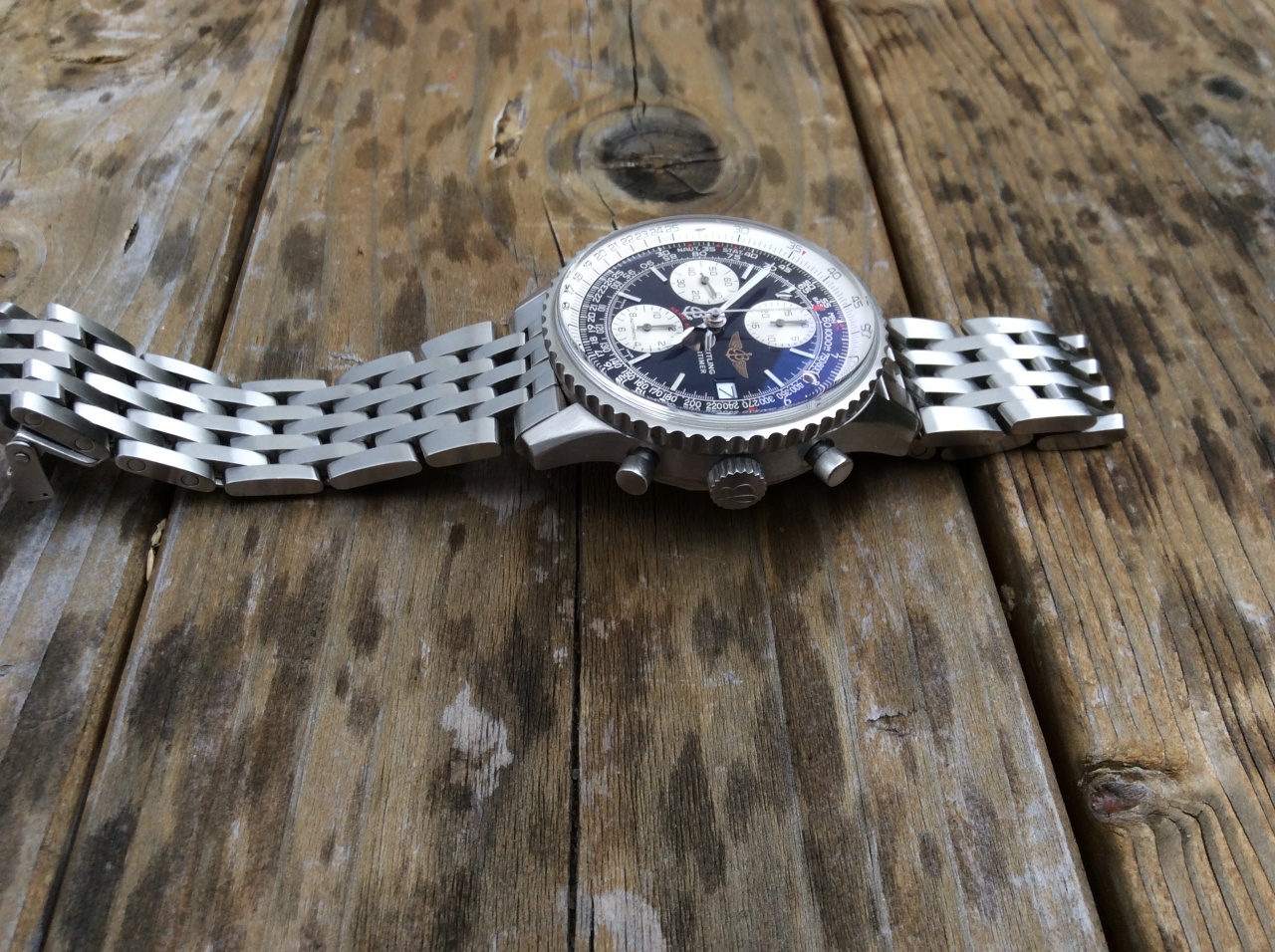 Поэтому крепко призадумался - любви с первого взгляда не получилось с Навитаймером, правда, после разговора с консультантом - он упомянул, что есть так называемый в кругах любителей часов «Old Навитаймер» - предыдущие модельные ряды, в которых и расположение накопителей и логотип и даже сатинированный корпус вроде как имелся, что мне нужны.