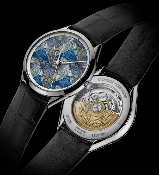 На циферблате этой модели изображены летящие голуби. Композиция позаимствована с картины Маурица Корнелиса Эшера. Декоративный мозаичный узор создавался с привлечением целого ряда традиционных промыслов из мира тонкого часового искусства: гравировки, техники миниатюрной росписи по эмали, инкрустации драгоценными камнями и гильоширования.