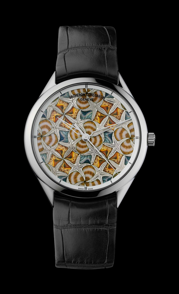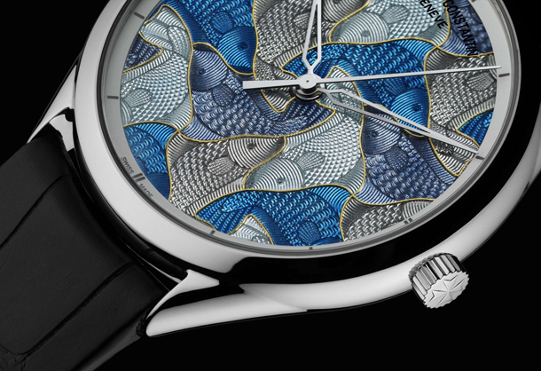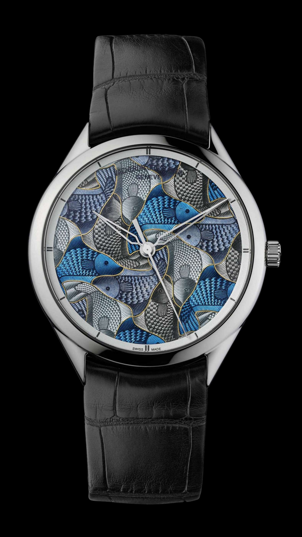 Изображение на циферблате, изготовленном с помощью гравировки и эмалевой росписи шамплеве, является репродукцией картины Маурица Корнелиса Эшера. Первым к работе приступает гравировщик, который «сухой» иглой обозначает на циферблате контуры раковин, а затем вырезает отдельные участки, создавая рельефную гравировку для последующей эмалировки по технике шамплеве.