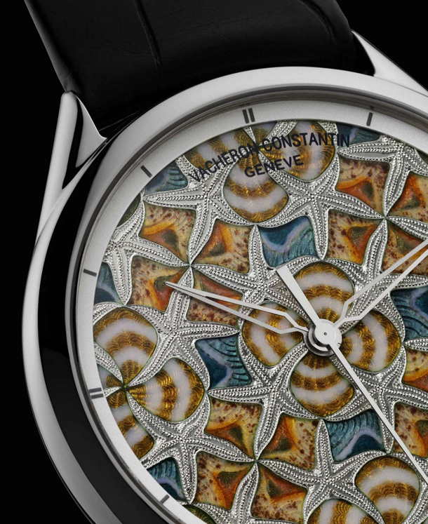 Циферблат этой модели изображает желтоватое морское дно с примостившимися на нём морскими звездами и раковинами, поверх которых «проплывают» изящные и легкие скелетонизированные стрелки. Переплетенная композиция из звезд и ракушек наделена изумительной перспективой, которая в зависимости от освещения по-разному передает анатомию морских жителей.