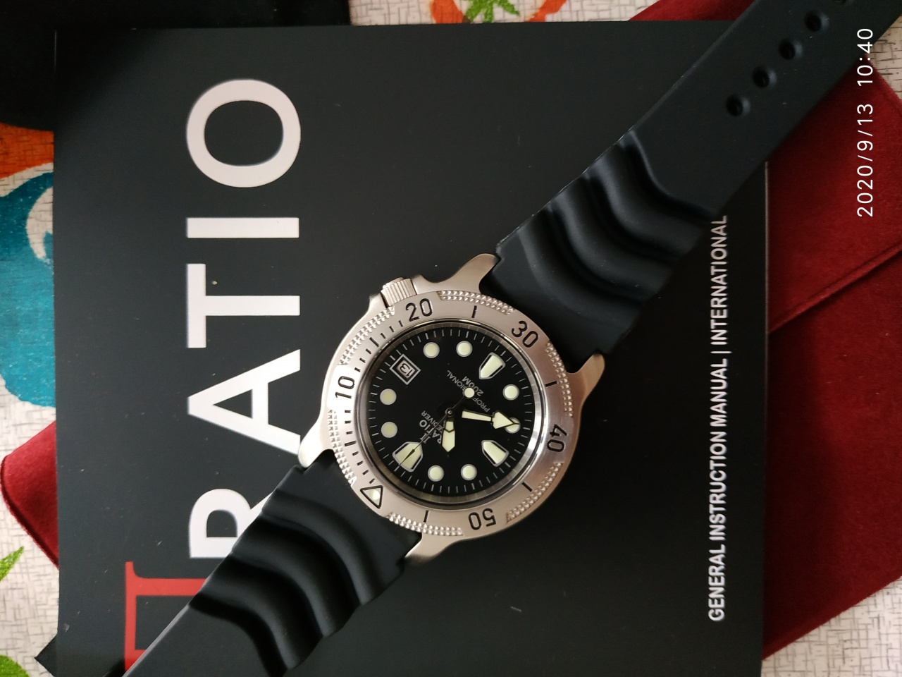 Сегодня получил от кретинвоч свои Ратио. Оч качественная сборка, безель без люфтов. Люм по яркости сопоставИм с сейками 200 м, оч яркий. Опять же,сапфир. Реально, часики порадовали.