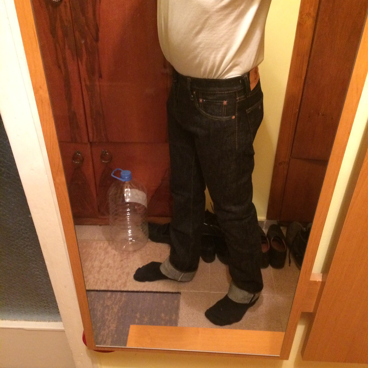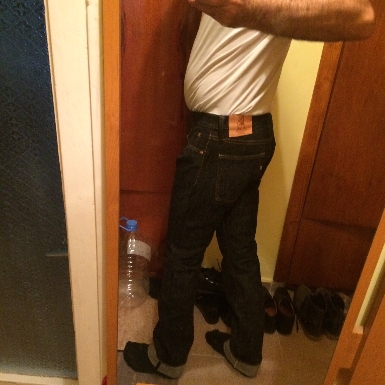 Открыл принесенный пакет (1030гр). Намного мягче сомов 710-19, ближе к они 552-20, но не так рельефны. Приятная жесткость такая.... наверное отпечаток ожидание наложило))) Застегнул с первого раза,плотненько так сели. Фото искорячившись сделал.., может кому пригодится. Размеры до замачивания (обязательно выложу в соответствующую ветку вместе с результатами после замачивания) следующие: Waist-44,5 Front Rise-27 Back Rise-37 Thigh-32,5 knee -21,8 Leg Opening-20,8 Inseam-97. (191см, 90кг)