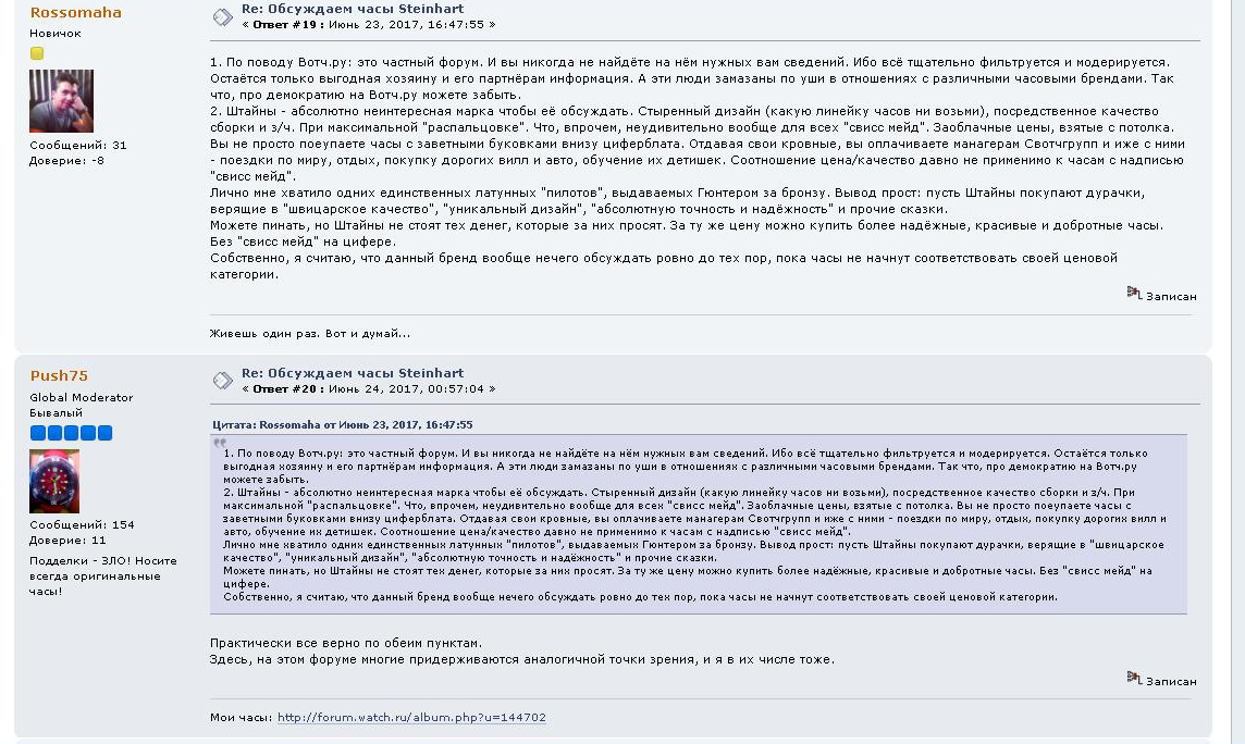 А еще один странный товарищ вообще призывает в этой теме забить на все и носить эти часы и даже продать желающим узнать о них правду. И подделку уже называет добрым словом реплика. Потому что "сами часы исполнены отлично, внешних придирок к качеству нет" (с). На другом небольшом часовом форуме он кстати Global Moderator и яростный борец с подделками. По рангу такой же как Super Moderator Laureus! Коллега.